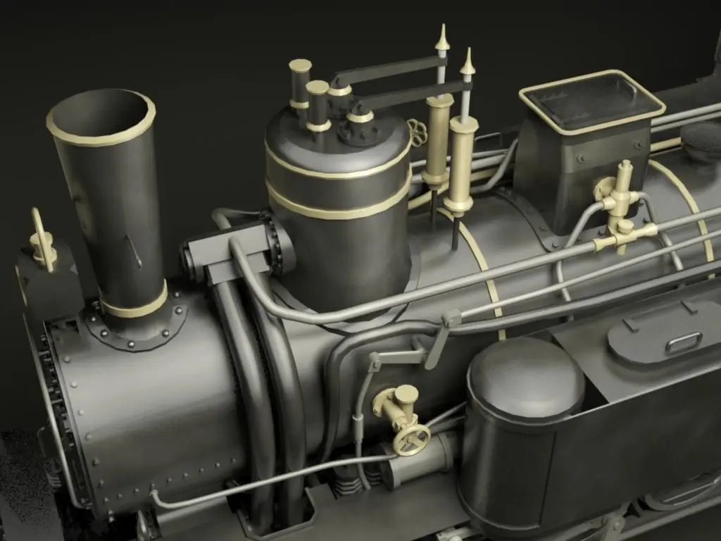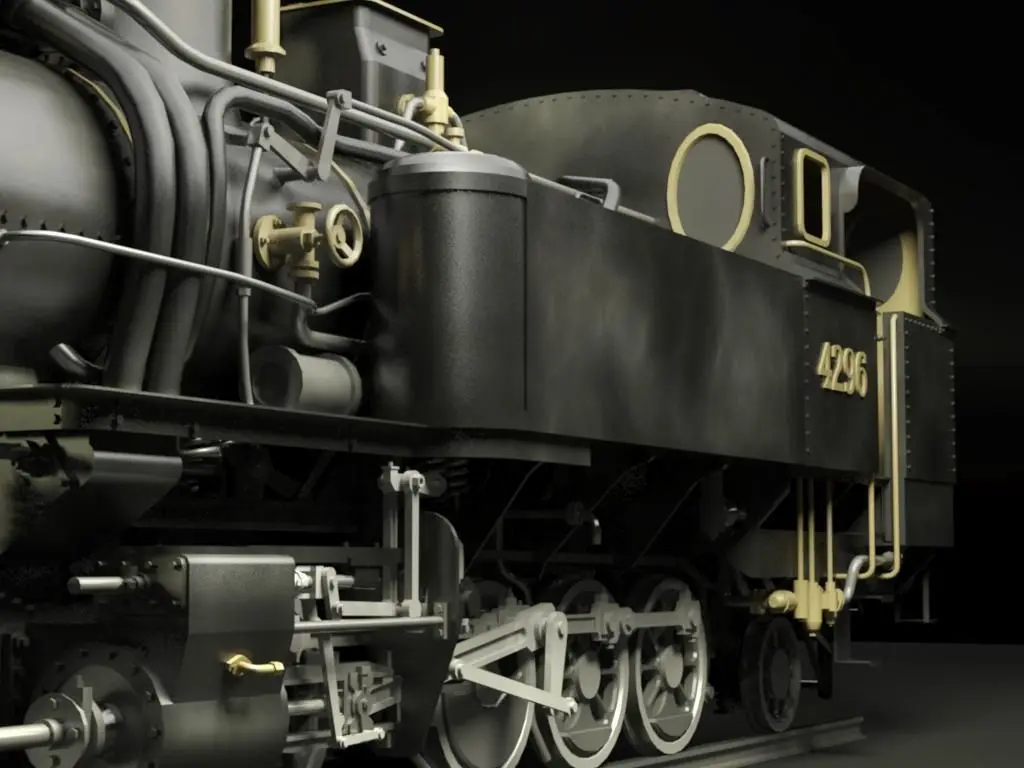 Every component (eg: boiler, wheel, frame, etc) have been named and separated appropriately. You can better see this in some of the renders of the frame. Note that this model does not include cabin controls. Lights and skybox are included and the scene is ready to render in Mental Ray.