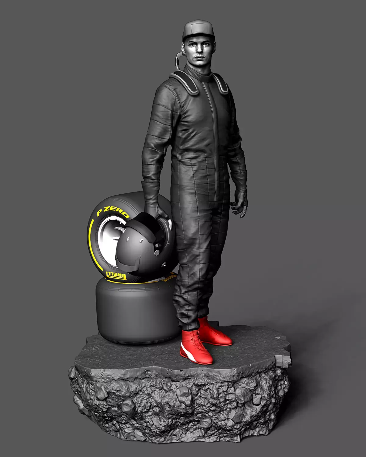 This statue of the 4 times world Champion, Max Verstappen is based on his 2021 world championship season.Racing for the long term Red Bull F1 Team and really standing his ground against then Daniel Riccardo as his team mate.