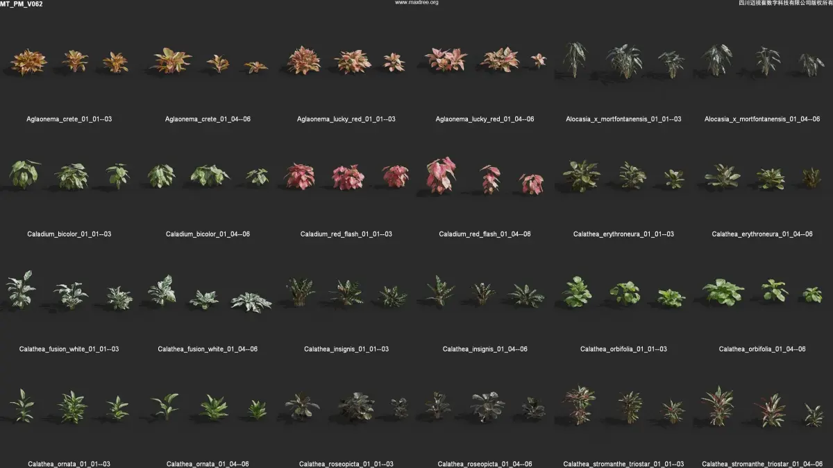 Plant Models Vol 62 is a collection of high-quality 3D flower models. Includes 12 species, total 72 single models.