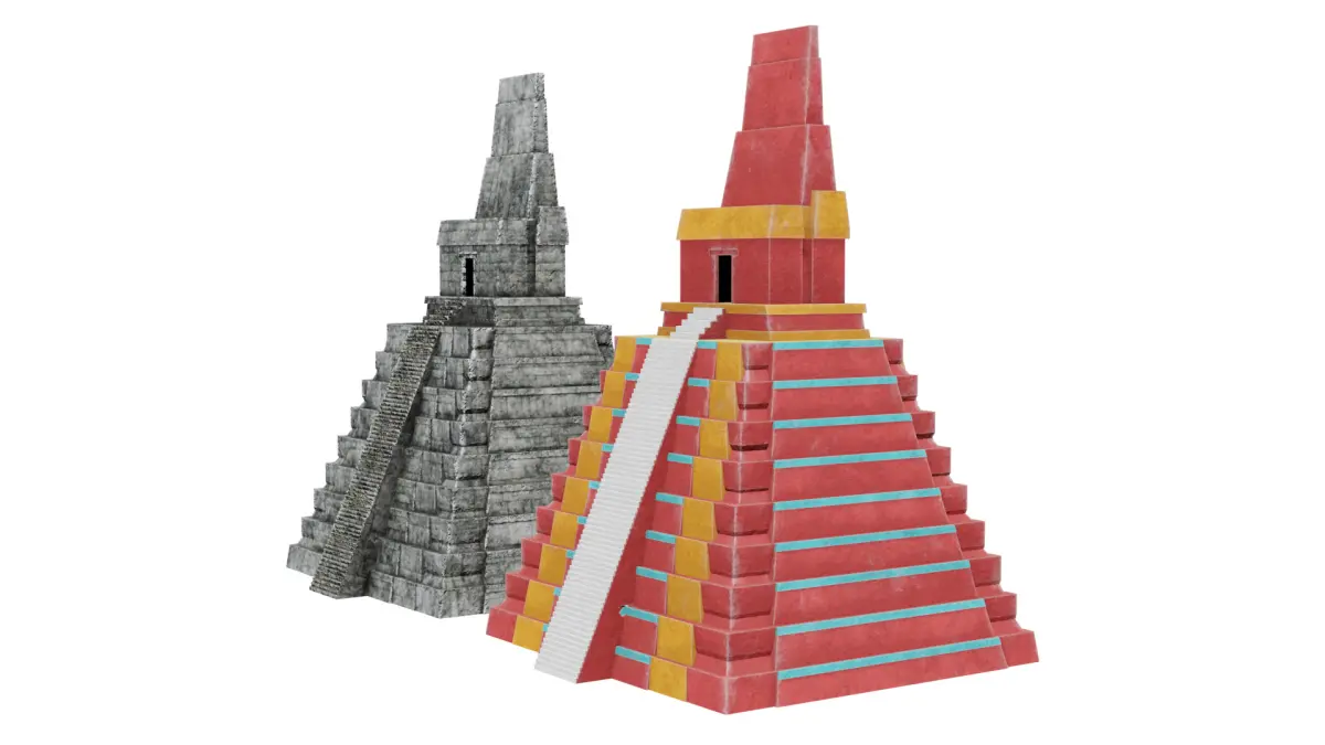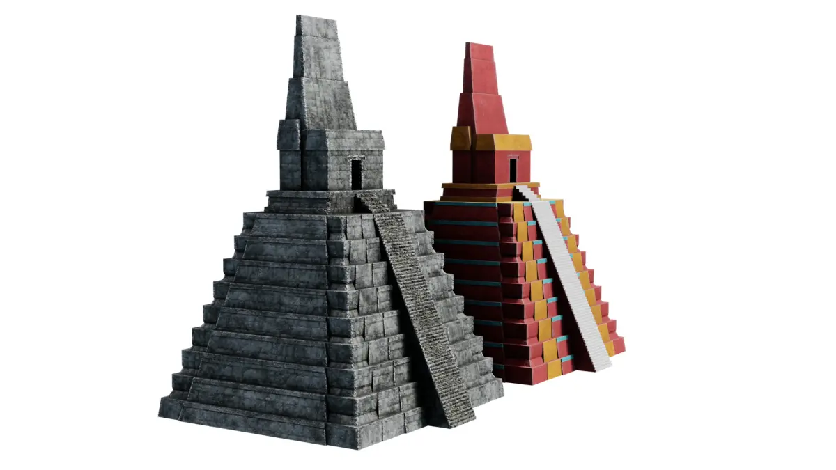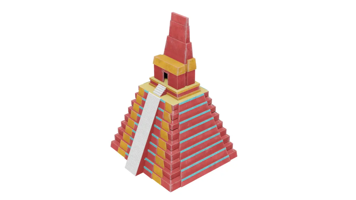 3d model of the Temple I pyramid of the Mayan city of Tikal., also known as Temple of the Great Jaguar