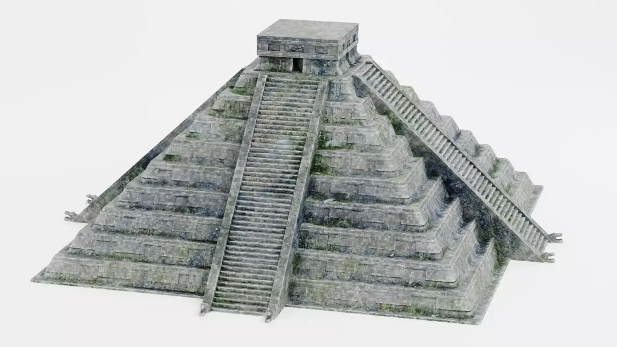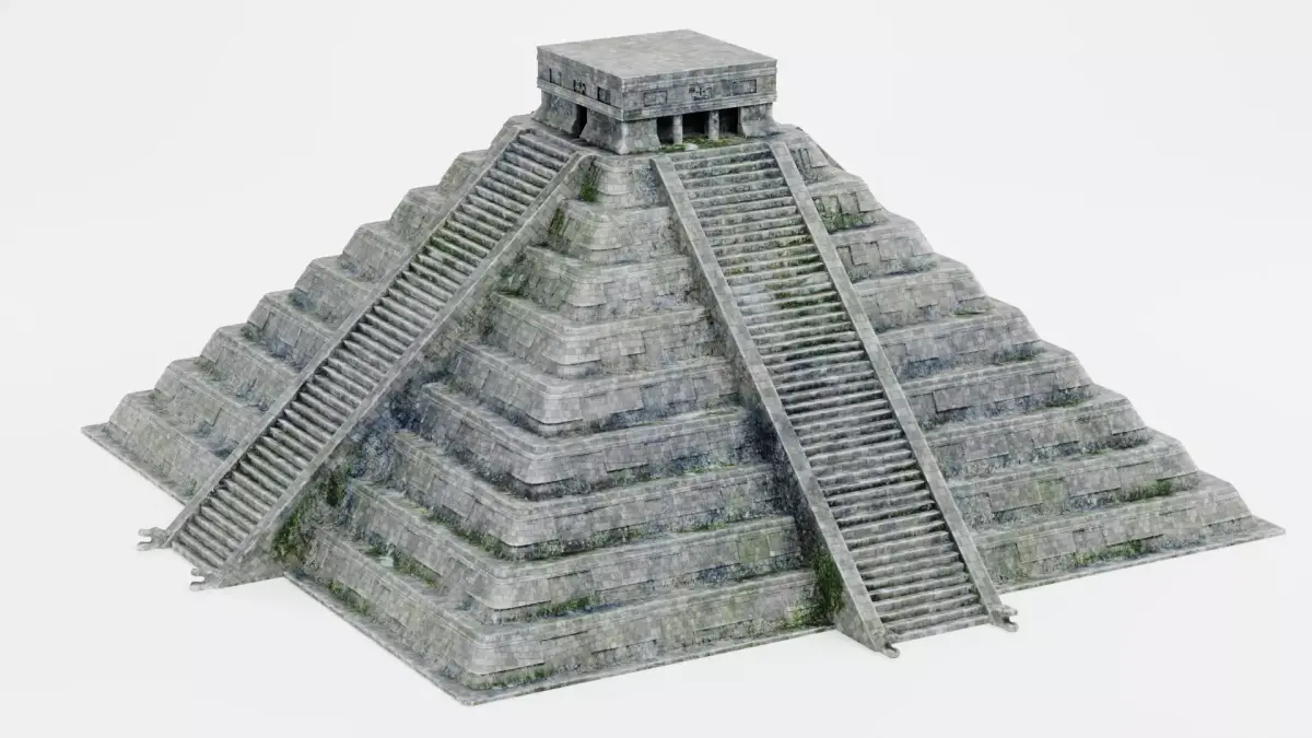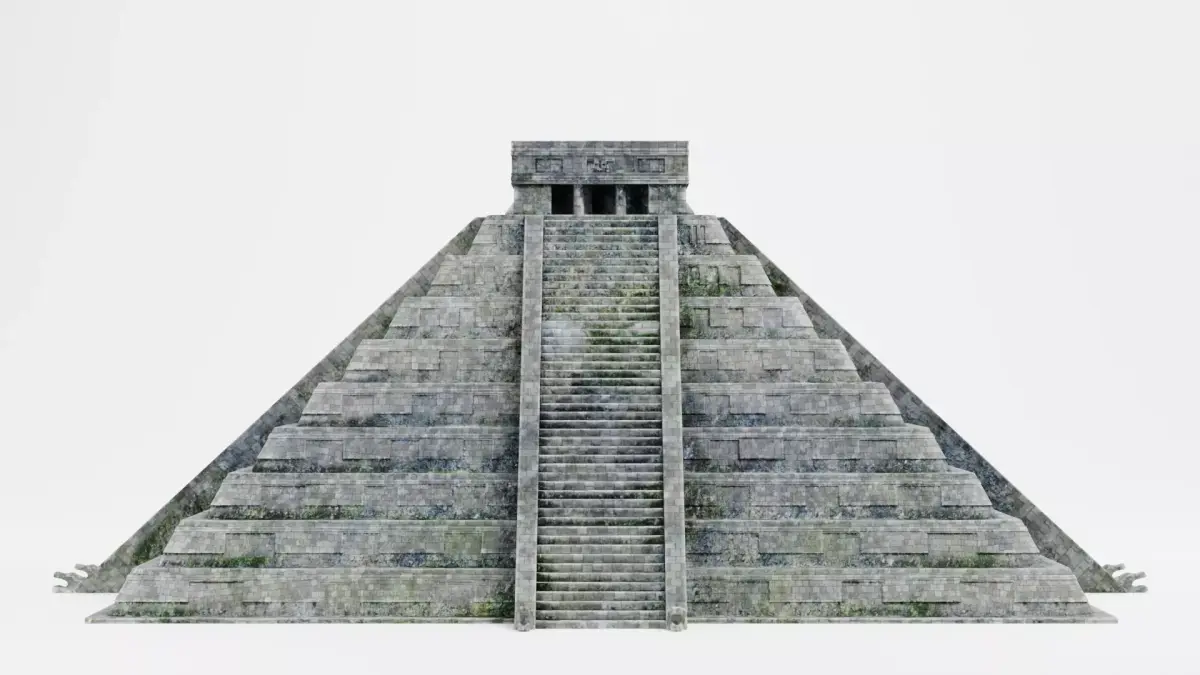 A stepped stone pyramid inspired by Mesoamerican architecture and the visual language of Chichén Itzá. The model is built around clear structure, balanced proportions, and readable stone materials, so it feels natural in both realistic and stylized environments. The structure has expressive stone surface shaped by time and environment. The materials include traces of erosion, dirt, and organic buildup. It’s an architectural asset that fits naturally into historical scenes, game environments, cinematic shots, and large-scale landscapes.