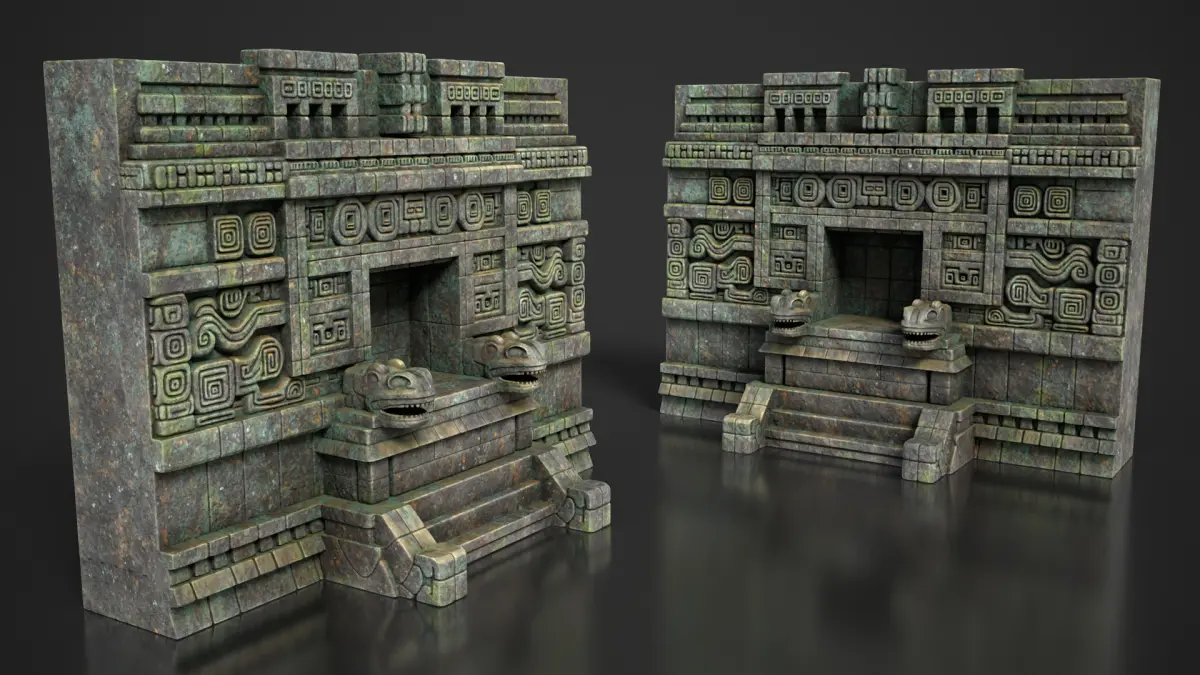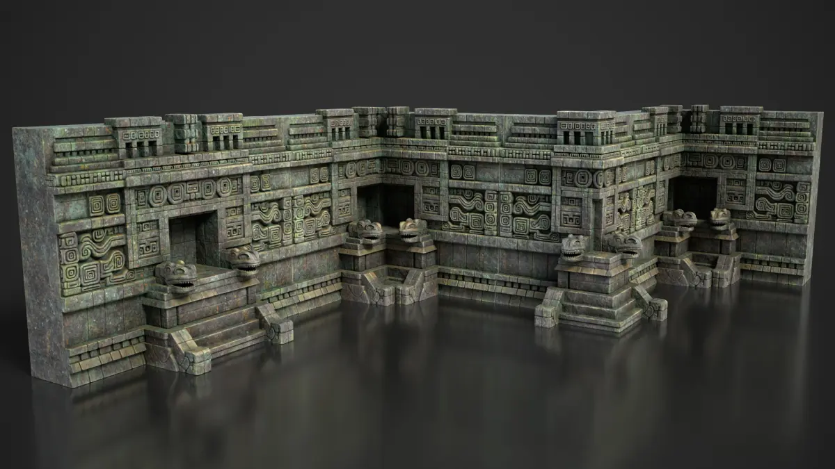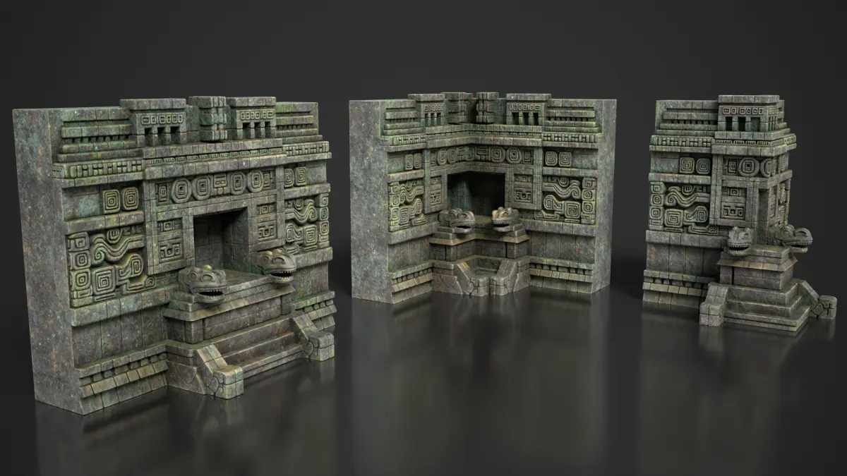 This modular 3D kit includes 3 stylized Mayan temple wall models: a straight wall, an outer corner, and an inner corner — designed for easy tiling and seamless construction. Perfect for game engines (Unreal, Unity) or high-quality rendering. Clean geometry with PBR materials included. Ideal for ancient ruins environments, cinematic scenes, or level design.