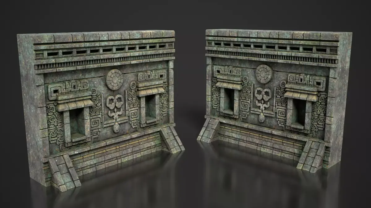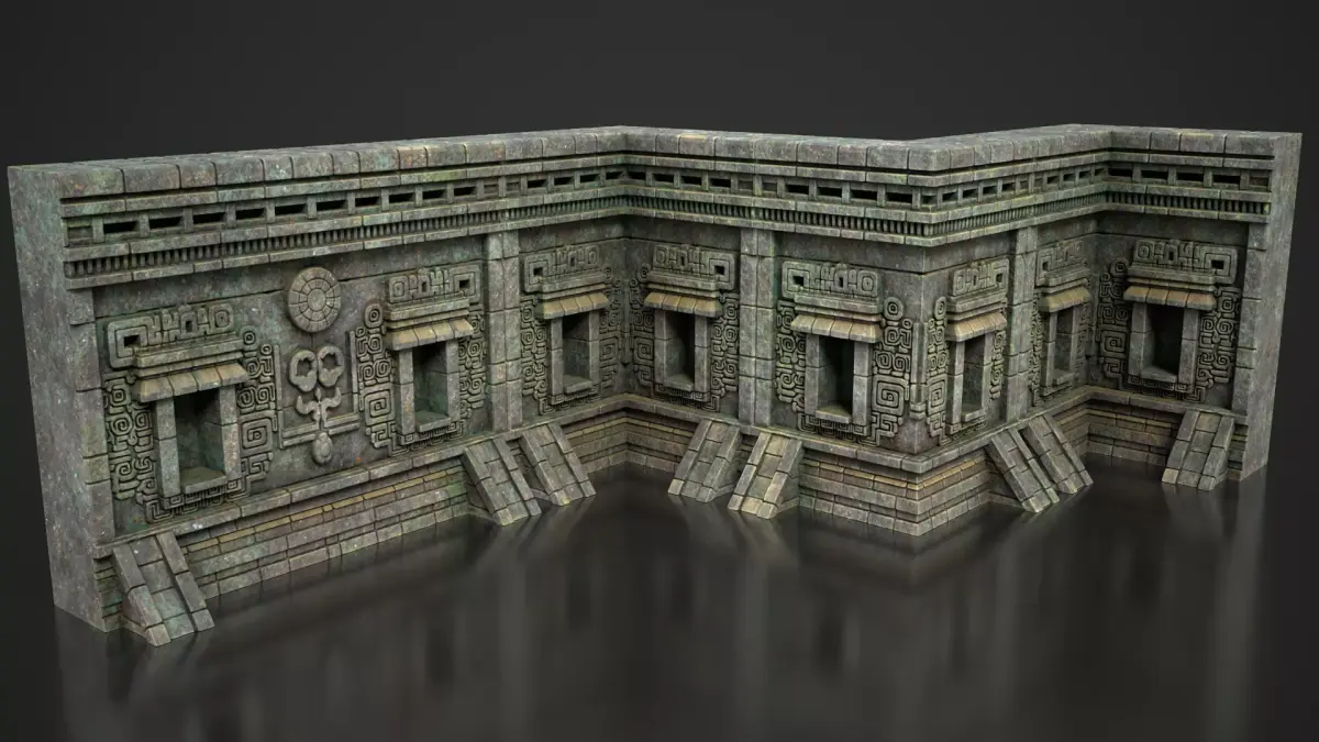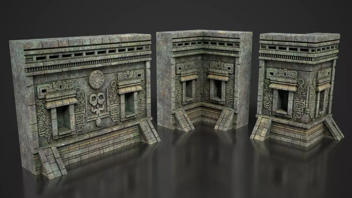 This modular 3D kit includes 3 stylized Mayan temple wall models: a straight wall, an outer corner, and an inner corner — designed for easy tiling and seamless construction. Perfect for game engines (Unreal, Unity) or high-quality rendering. Clean geometry with PBR materials included. Ideal for ancient ruins environments, cinematic scenes, or level design.