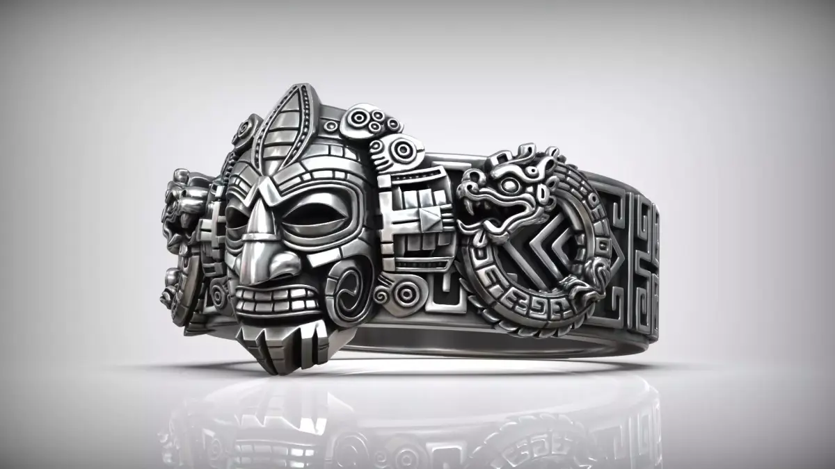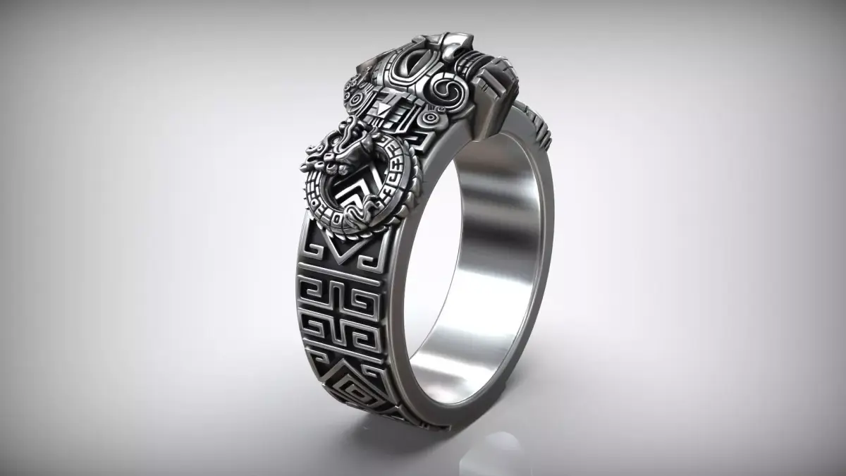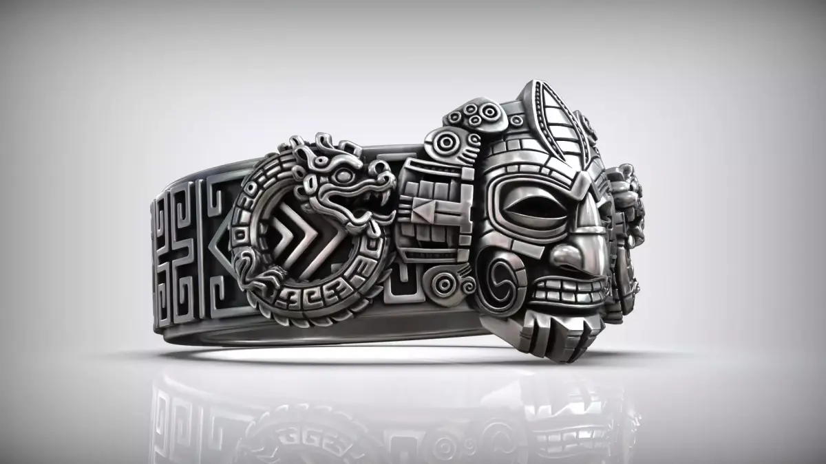 Aztec Warrior Ring - Detailed 3D Model for Jewelry Design