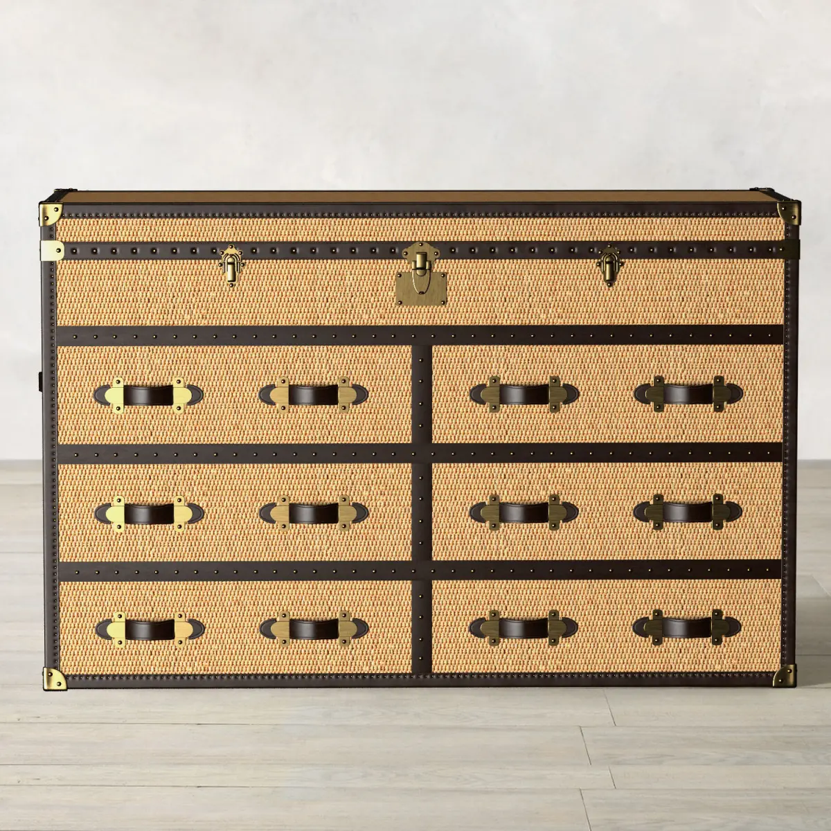 Name: MAYFAIR RATTAN DOUBLE CHESThttps://www.restorationhardware.com/catalog/product/product.jsp?productId=prod18340419&categoryId=searchRestoration hardware RH MAYFAIR loft industrial vanguard rattan brass bronze stitch leather rivet chest of drawers nightstand coffee coffee table lock seam thread chest for living room bedroom Timothy Oulton suitcaseVersion: 2013Preview: YesUnits: MillimetersPolys: 658,338XForm: YesBox Trick: YesModel Parts: 71Render: V-RayFormats: 3Ds Max 2013, OBJ, FBX, 3DSATTENTION!Who works in the V-Ray version lower than 3.1, be careful, in some materials in the BRDF section there is Microfaset GTR (GGX), if your version is older than 3.1, thenthe BRDF field will be empty. Choose Blinn, Phong or Ward - which is more preferable for you