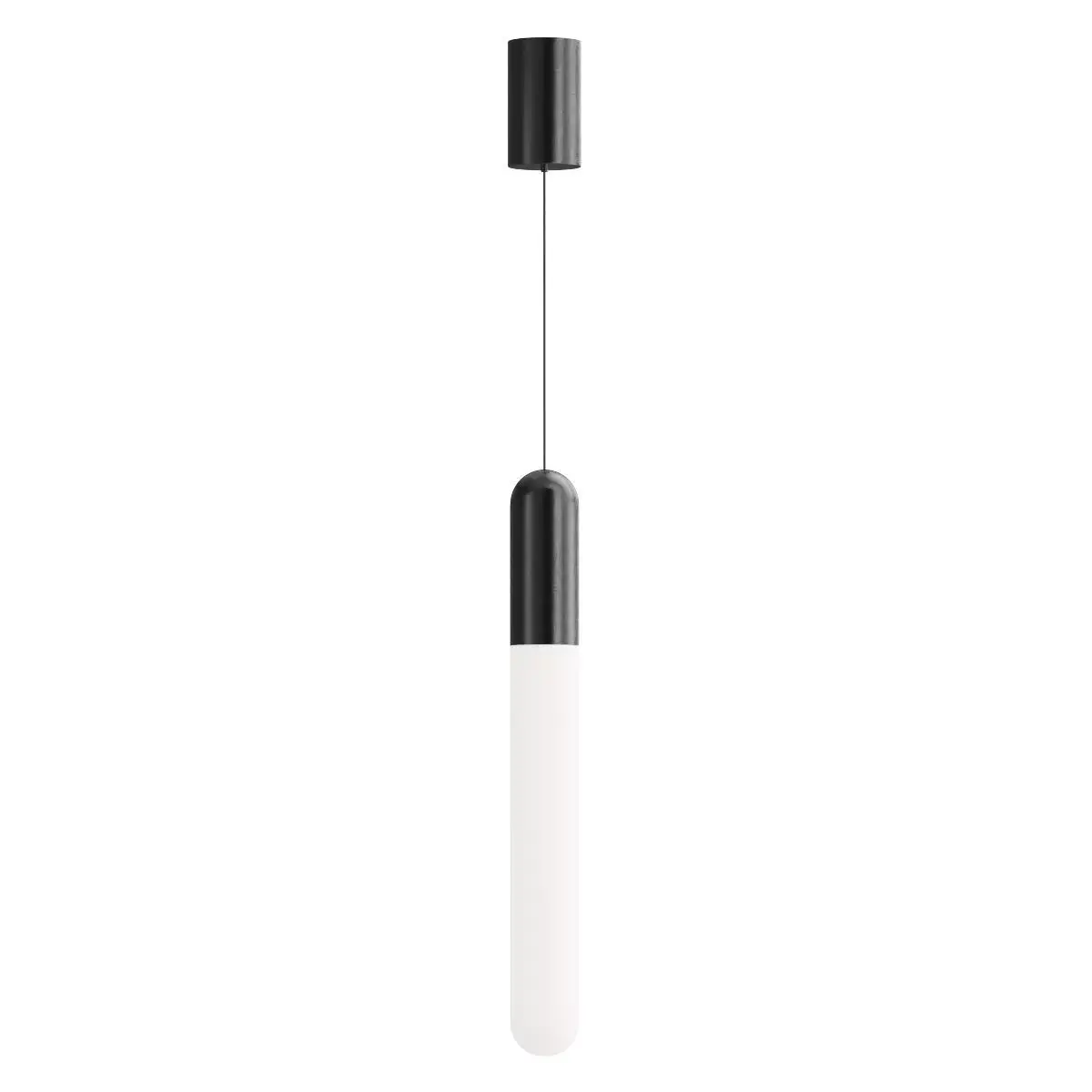 This high-quality 3D model accurately represents the Maytoni Mist pendant lamp, a true icon of contemporary lighting design. With its minimalist, capsule-like form, this fixture adds a touch of sophistication and unique character to any interior. The model captures the lamp's sleek silhouette and a two-toned body, showcasing a striking contrast between a polished metallic or matte top and a soft, frosted glass diffuser.