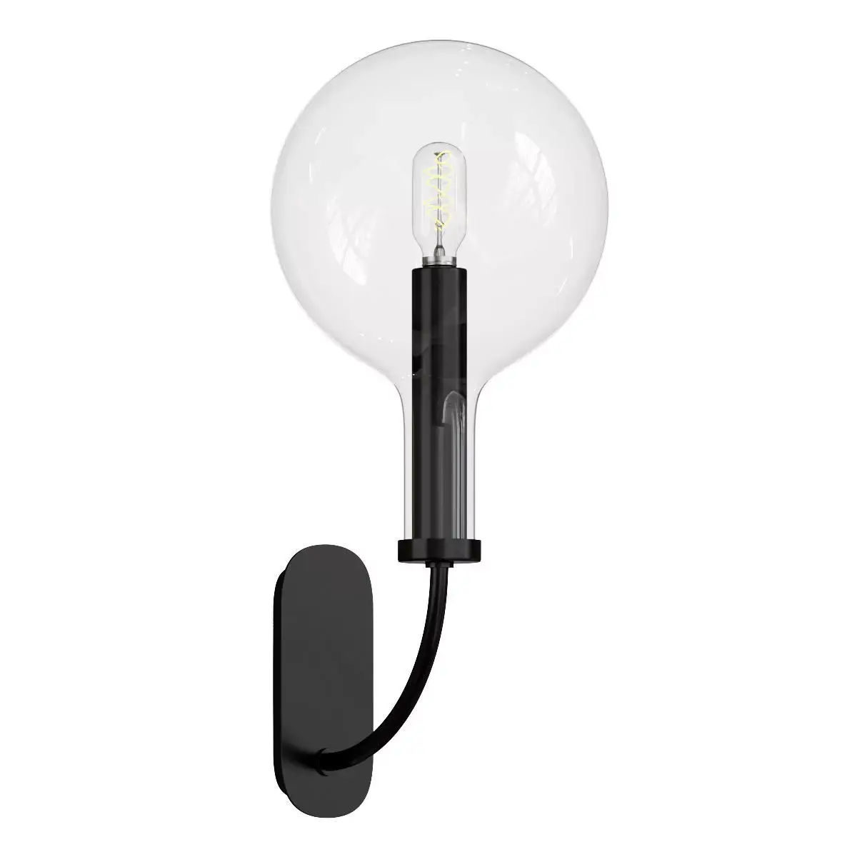 Large Spherical Diffuser: A generously sized, clear or slightly amber-tinted glass globe serves as the shade, housing a decorative filament-style LED bulb.