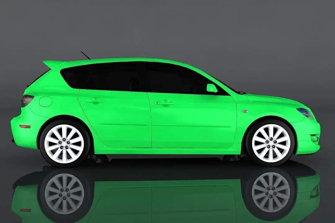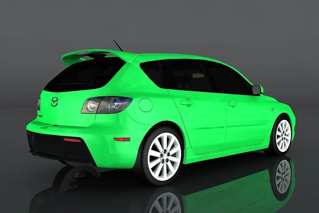 Mazda 3 2009 low-poly 3d model ready for virtual reality (vr), augmented reality (ar), games and other real-time apps.
