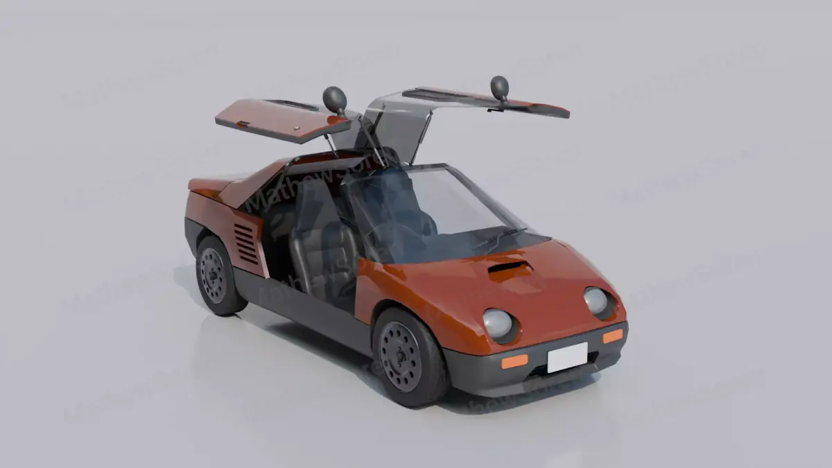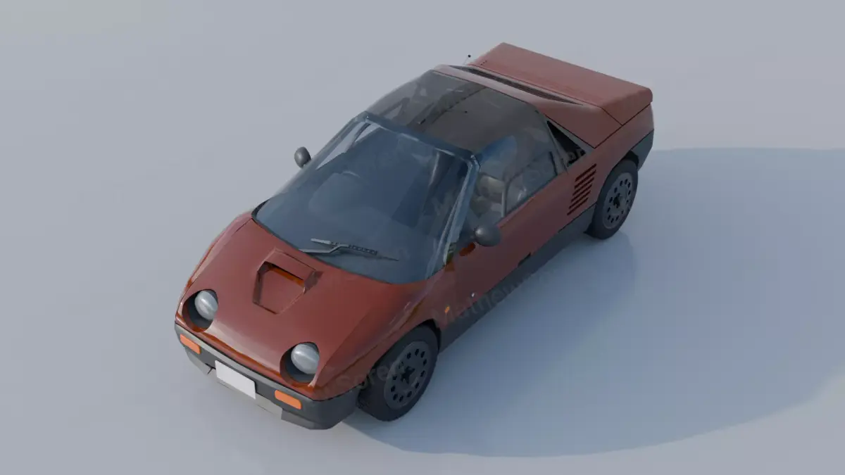This 3D model faithfully reproduces the iconic Mazda AZ-1, a 1990s kei sports car known for its compact design and gullwing doors.