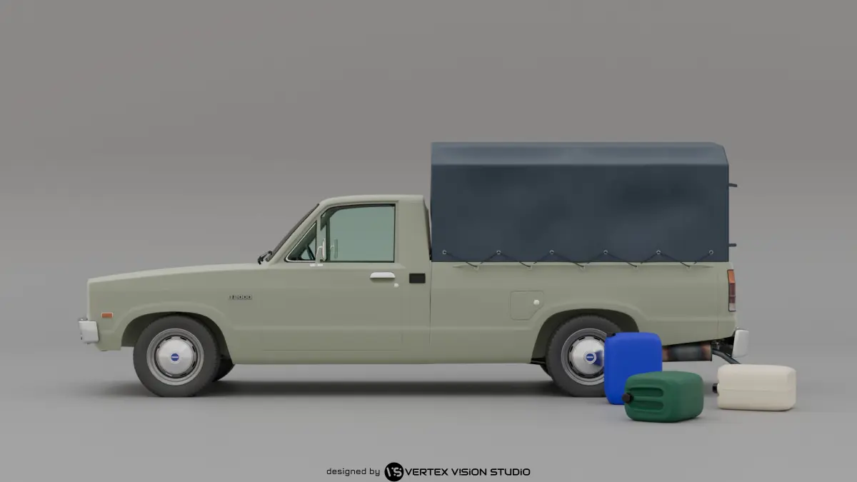 This premium-quality 3D model of the Mazda B2000 Sundowner captures the iconic essence of the 1980s Japanese pickup truck, with added extras to elevate its appeal for automotive enthusiasts, designers, and 3D professionals. The model was carefully designed in Blender, ensuring a perfect balance between detail and usability.