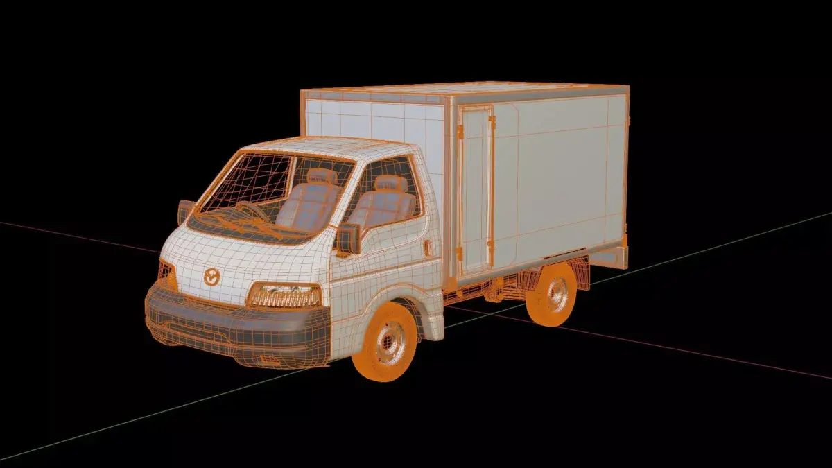 3D model of the Mazda Bongo Box TruckCreated in Blender and already rigged.The mesh of the model in the Blender file format is mainly quads.