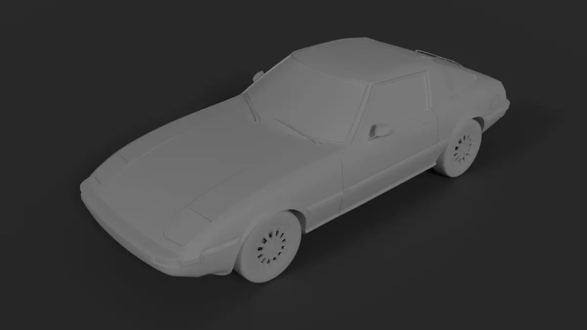 Mazda RX-7 FB was a japanese sports car manufactured between years 1979 and 1985. The car used 1.1l Rotary engine called 12A in series 1 and series 2. Series 3 introduced more powerful 1.3l 13B Rotary engine It was available in a coupe body style.Dimensions of car in real life are: