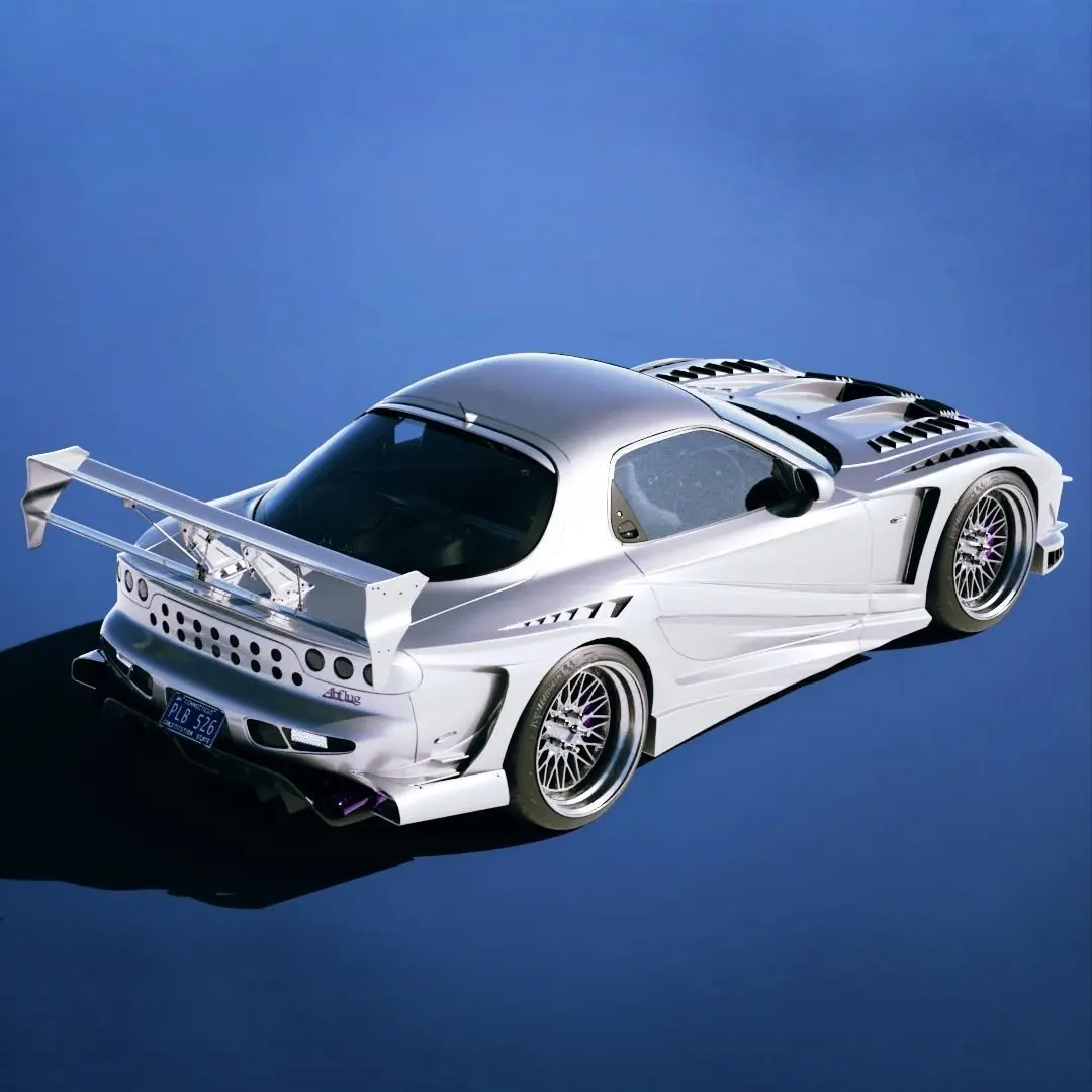 The Mazda RX-7 FD3S (1993-2002) is a true icon in the sports car world, and is widely regarded as one of the best sports cars of its era. One of the key factors that sets the RX-7 apart from its competitors is its unique rotary engine, which provides smooth and linear power delivery, and helps to make the car feel exceptionally responsive and nimble on the road.The Abflug Anibus body kit for the RX-7 FD3S was released in 1994, and was designed to enhance the already distinctive appearance of the car. The kit includes a front bumper, side skirts, rear bumper, and a rear wing, all made of high-quality materials. These parts are not only designed to look great, but they also help to improve the car's aerodynamics and stability at high speeds.In terms of performance, the RX-7 FD3S with the Abflug Anibus kit is an incredibly capable sports car that offers excellent handling, thanks in part to its lightweight and well-designed chassis. The car's responsive steering and sharp handling make it a joy to drive on winding roads, and the smooth and linear power delivery from the rotary engine provides plenty of acceleration and speed.The RX-7 FD3S with the Abflug Anibus kit also offers a comfortable and well-appointed interior, with a range of features and amenities that make it a great car for daily use. The car's well-designed cabin provides excellent visibility, and the supportive and comfortable seats help to keep you feeling refreshed and alert during even the longest drives.Overall, the Mazda RX-7 FD3S with the Abflug Anibus kit is a classic sports car that is loved by enthusiasts for its unique design, excellent handling, and smooth performance. If you're looking for a car that offers a great balance of style and driving performance, the RX-7 FD3S with the Abflug Anibus kit is definitely worth considering. Whether you're looking for a car to drive every day, or a weekend toy to enjoy on the track or back roads, the RX-7 FD3S with the Abflug Anibus kit is sure to impress.