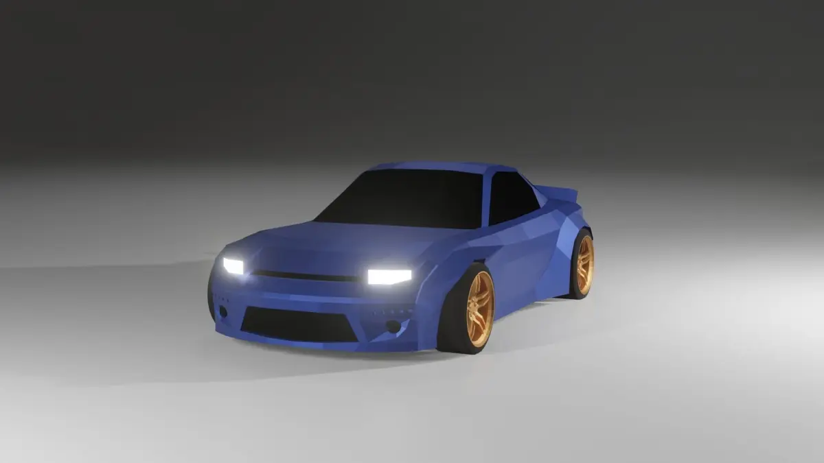 3d model of Mazda RX-7 low poly in the Rocket Bunny body kit.