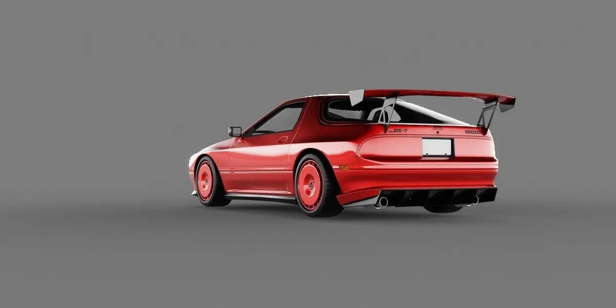 This is a detailed model of a tuned Mazda RX7 FC3S. The car was produced between 1985 and 1991.