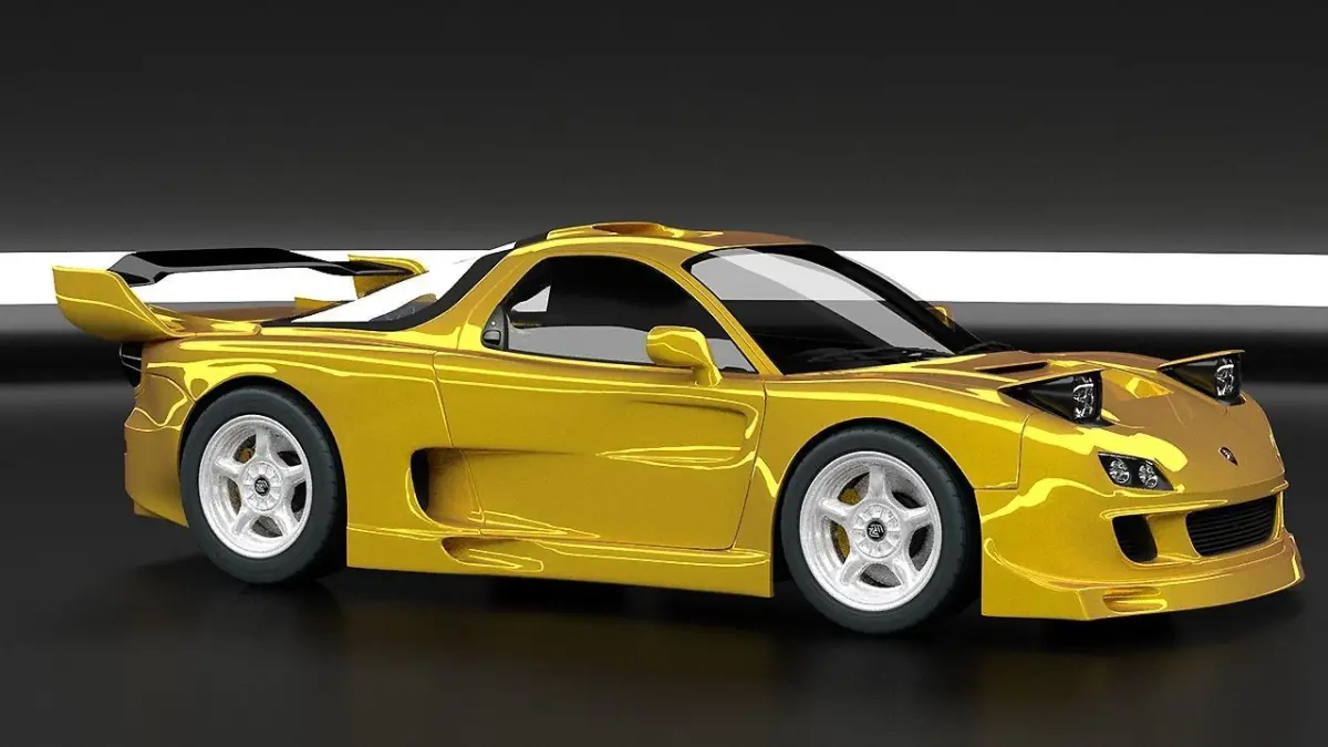 The Mazda RX7 but with some radical changes.The Engine is now a 4 Rotor, it is placed transversaly just behind the driver to create un MR2 like Mid-Ship Design. But thats not all, 2 Turbo and 2 Chargecooler.The Wildest RX7 FD Concept you can imagine.As always, tone of mechanical part are modelised.Files :Blender 2,78aObjFbx3DSHave Fun.