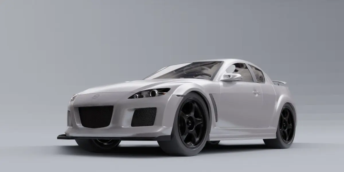 Mazda Speed RX8 model in Blender 3D rendered in Eevee. Model is polymesh with subdivision surface modifier. Add more details and realism to your rendering projects.