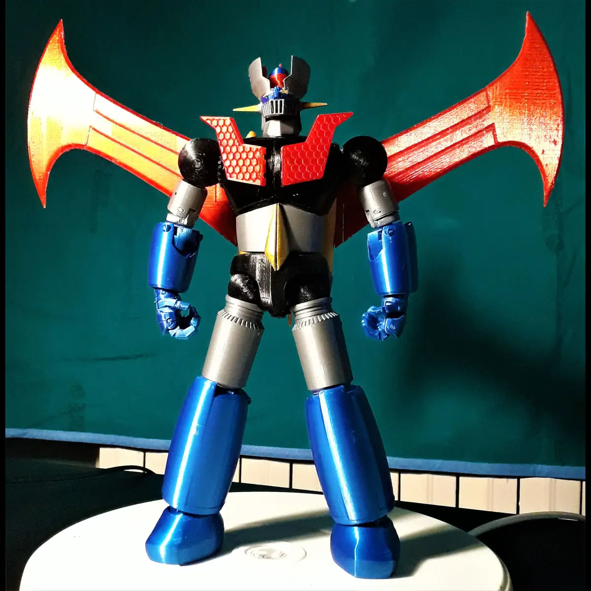 I have always been very fond of the character of mazinger z and for this reason I wanted to make an updated and improved version of one of my favorite characters. The set includes:Mazinger Z with magnetic boomerangHoover PilderJet Scrander with magnetic beltKabuto Modular baseSwords, Axes, belly, missile, Boomerang.Let's see all the main features in detail:Mazinger is fully articulated and robust.All joints have been redesigned.Knees and elbows have new concealed joints, more robust, easier to print and to assemble.All other ball joints are like those of the Atlas Destroyer.All parts are separated by color so you don't need paint, you just need a gold-colored marker to paint some small details.No screws are needed for assembly, you will need some glue to fix some details.There are two versions for the boomerang:one for magnets and one without.If you don't want to buy the magnets, you can print the boomerang version with plastic pins.In the instructions you will also find the instructions to buy the 3x1 mm N52 magnets on amazon.Hoover Pilder now it is bigger, and the fixing system on the mazinger head has been improved separate parts by color.Jet Scrander The jet is totally inspired by the Mazinger Vs Devilman version.It is assembled without screws and without glue, the parts are separated by color, so no paints are needed.The wings of the jet are variable and can be folded when stored in the hangar There are two versions for the belt, such as for the mazinger boomerang, with or without magnets.Kabuto Modular Base Always inspired by a productI have seen on the internet.I thought about making a dynamic pedestal / diorama.all the scaffolding is modular so you can give it the shape you prefer.you can print even 100 parts and assemble them.All accessories, such as the sword holder, arm holder, ax holder, can be mounted anywhere in the scaffold Totally customizable.The launch pad of the jet scrander is included, it is possible to keep it separate from the main base, or it is possible to connect it on three sides.The crane is mobile and runs from right to left, and rotates on its pin. Arrangement for 3 LEDs 5mm 12v, the reflectors and the red siren are functional. The reflectors have a conical shape and produce a cone of light, they are mobile and can be oriented in any direction.The lower side of the platform has holes for the passage of electrical cables.The model, base and accessories are compatible and modular with: