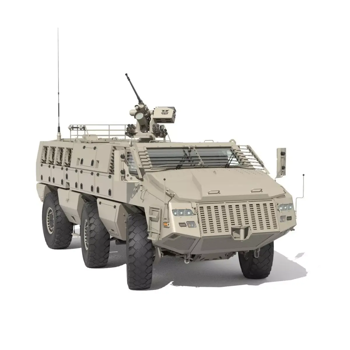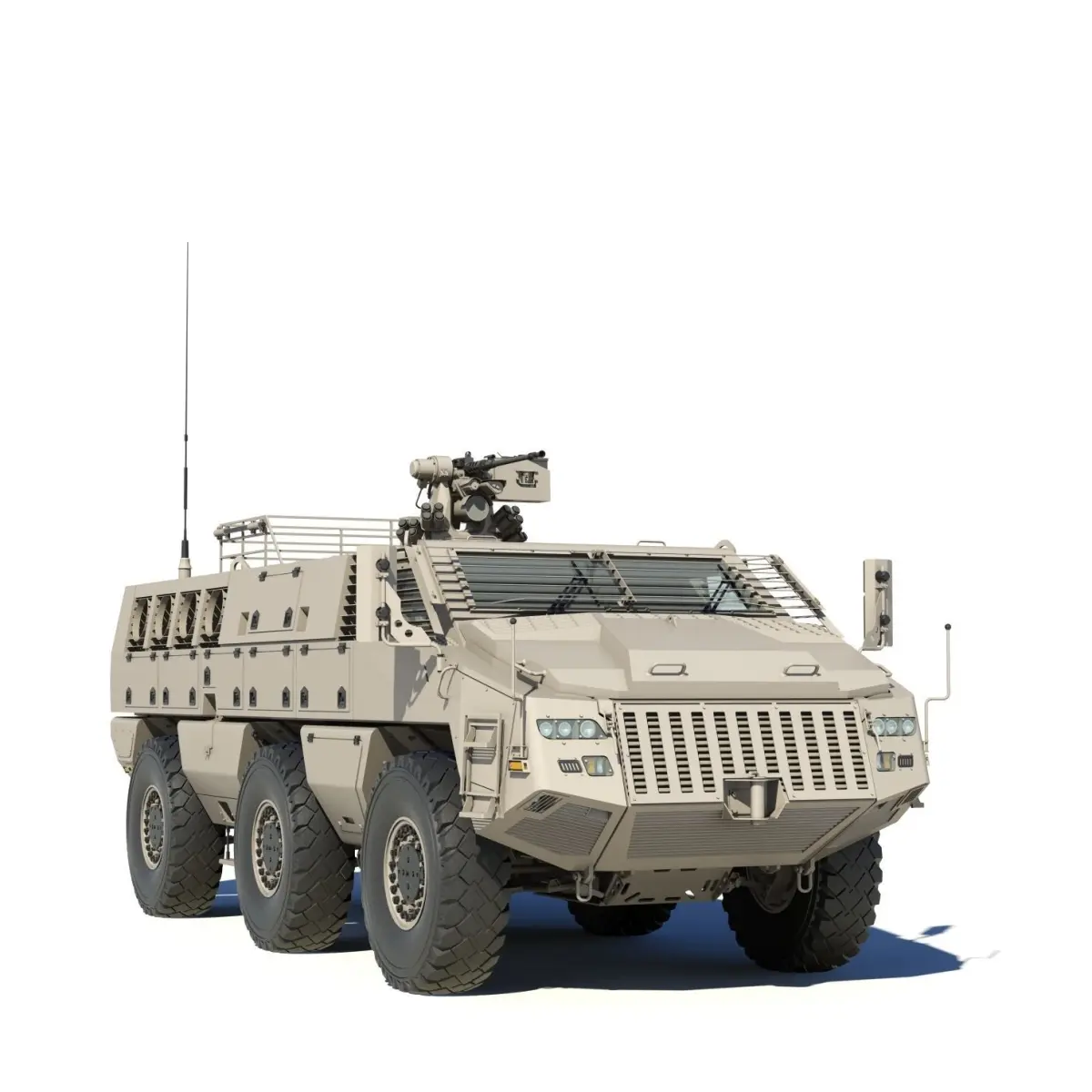 The Mbombe is a mine-protected, high-mobility armoured fighting vehicle produced by Paramount Group from South Africa that was launched in 2010. The Mbombe's unladen weight is 16 tonnes. Its maximum combat weight is 27 tonnes with a crew of 11. It has 6x6 wheel drive for use on different kinds of terrain. Its maximum speed is 100 km/h. Crew 2+1+8. Armament - remote weapon station M151-M2, automatic grenade launchers. Ballistic protection: CERN level B7 or STANAG 4569 level 3.