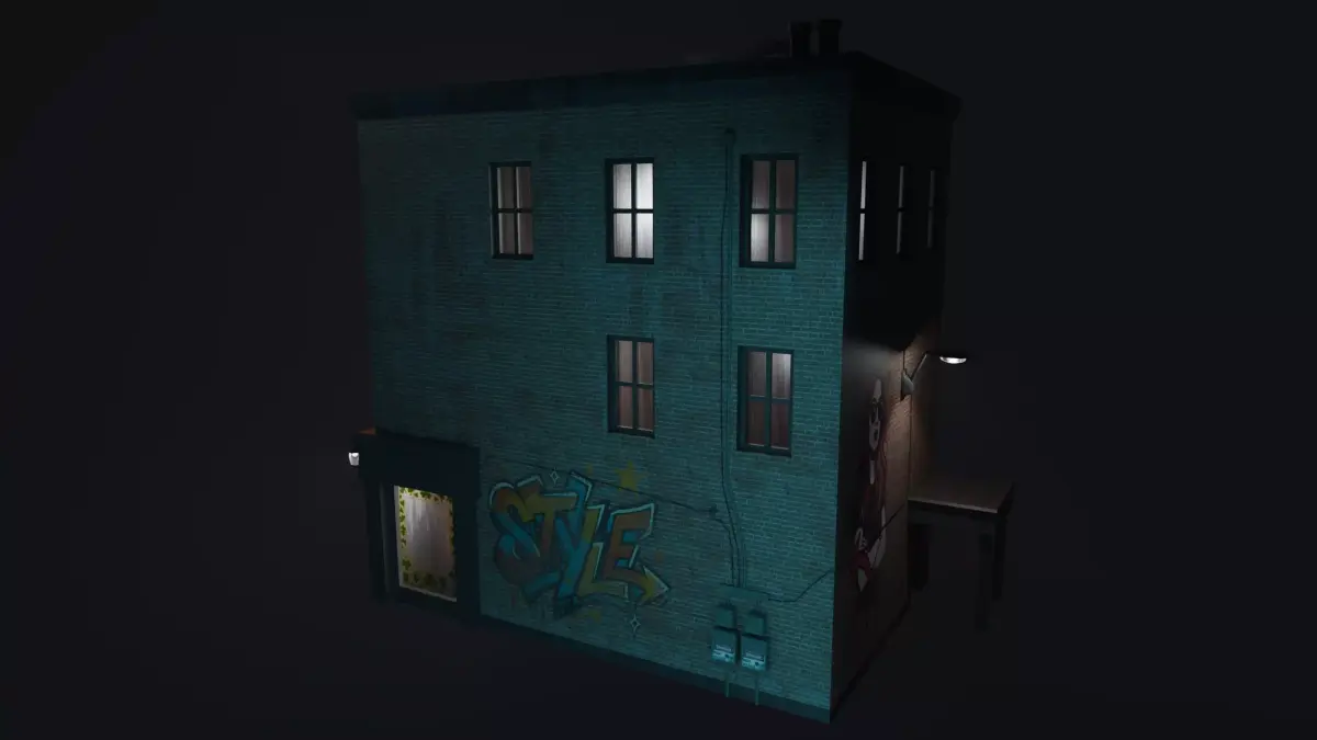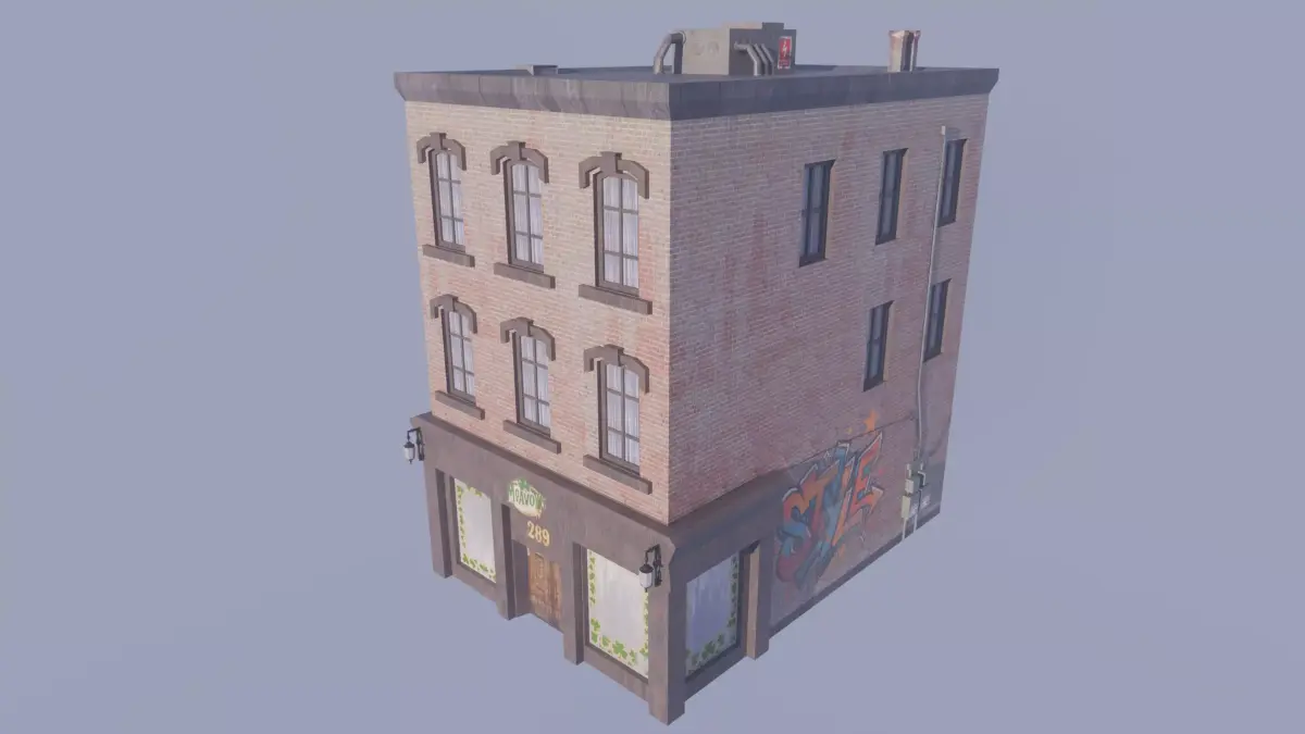 Included in the package:<> Game-ready mesh formats (.fbx + .blend)<> Single 4K baked texture for streamlined performance<> Clean asset—building and base textures only, no clutter<> Optimized for stylized, mobile, or low-overhead projects<> Original source meshes with assigned PBR materials<> Additional baked maps for enhanced detail<> GIMP texture layer files for easy customization or rebaking<> Graffiti overlays and custom decals for added personality<> Render setup featuring fog and nighttime lighting<> Test character included for scale reference<> Full project files for deeper exploration or remixing