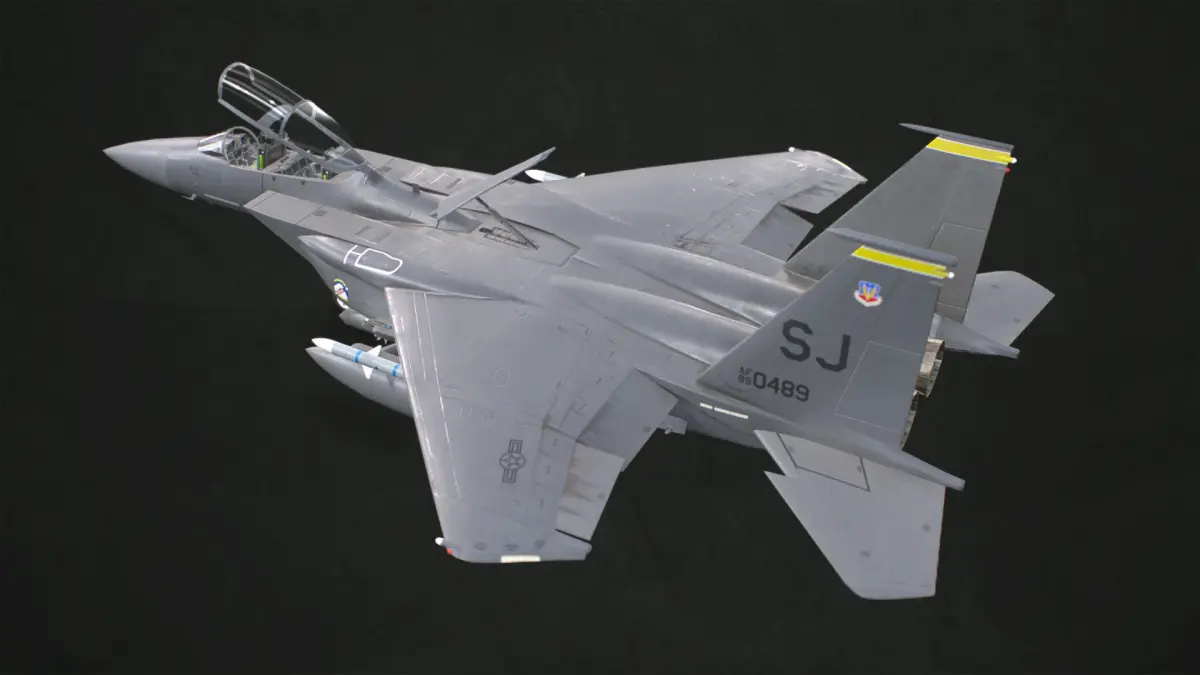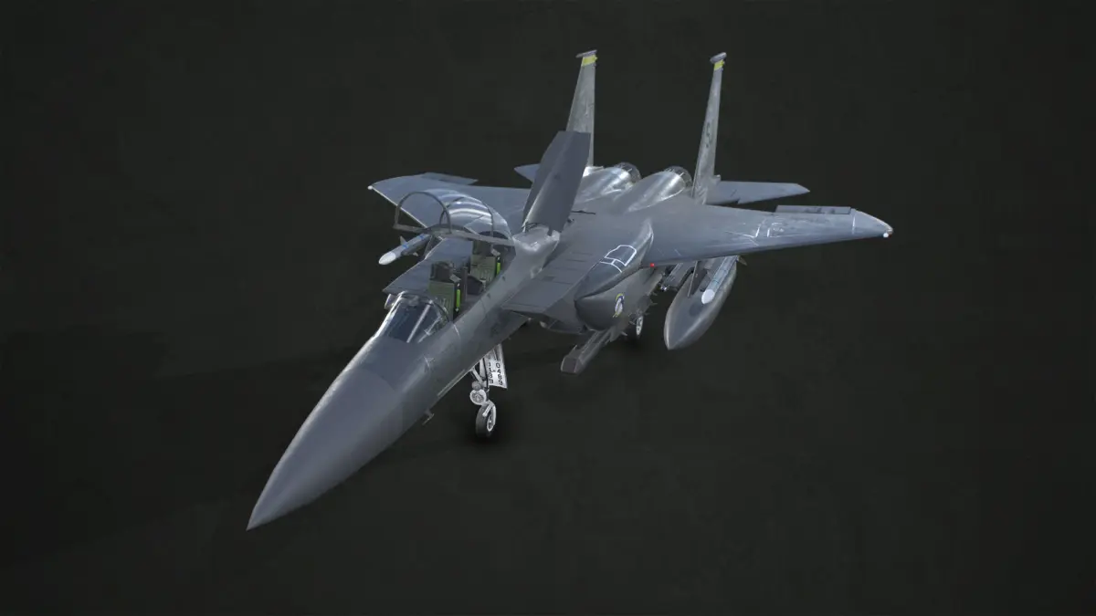 3D model of a McDonnell Douglas F-15E Strike Eagle with PBR textures. The model is low poly (39.931 Tris), game-ready and ready to animate (not animated):