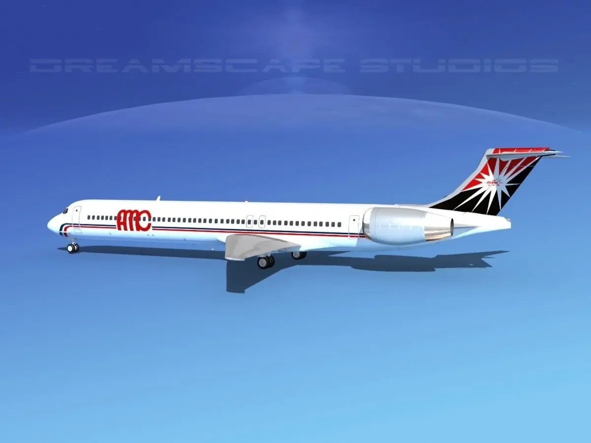 McDonnell Douglas MD83 AMC Airlines This model was originally built in Max 13 near to scale (within 3-4% of scale) and fully textured. It comes with all the materials and textures shown in renderings here.It has a detailed exterior including radio antennas and pitot tubes. Landing gear have been finished with a moderate amount of detail too.