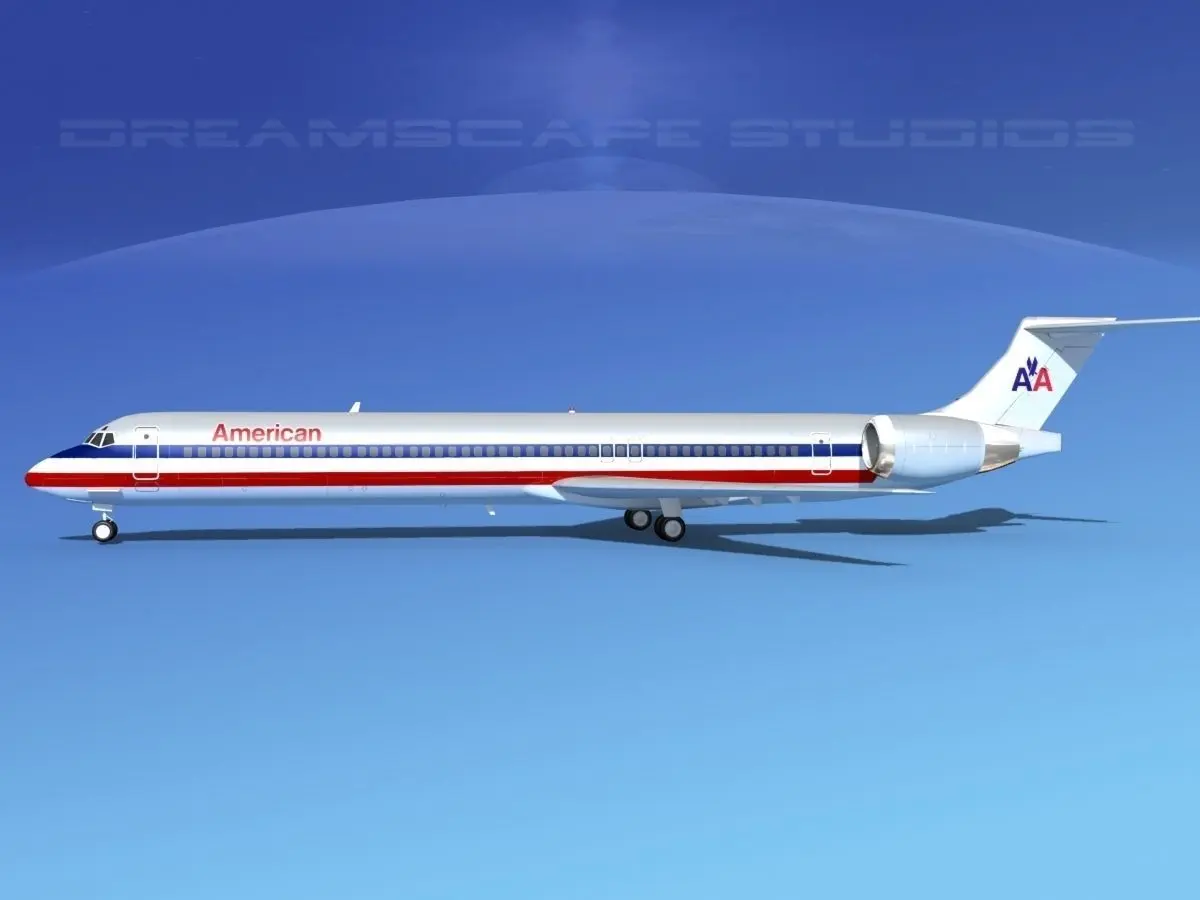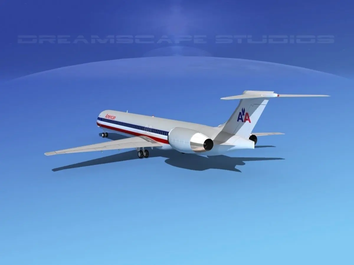 McDonnell Douglas MD83 American Airlines This model was originally built in Max 13 near to scale (within 3-4% of scale) and fully textured. It comes with all the materials and textures shown in renderings here.It has a detailed exterior including radio antennas and pitot tubes. Landing gear have been finished with a moderate amount of detail too.
