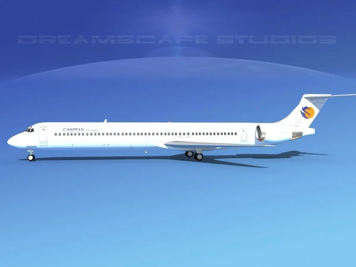 McDonnell Douglas MD83 Caspian Airlines This model was originally built in Max 13 near to scale (within 3-4% of scale) and fully textured. It comes with all the materials and textures shown in renderings here.It has a detailed exterior including radio antennas and pitot tubes. Landing gear have been finished with a moderate amount of detail too.