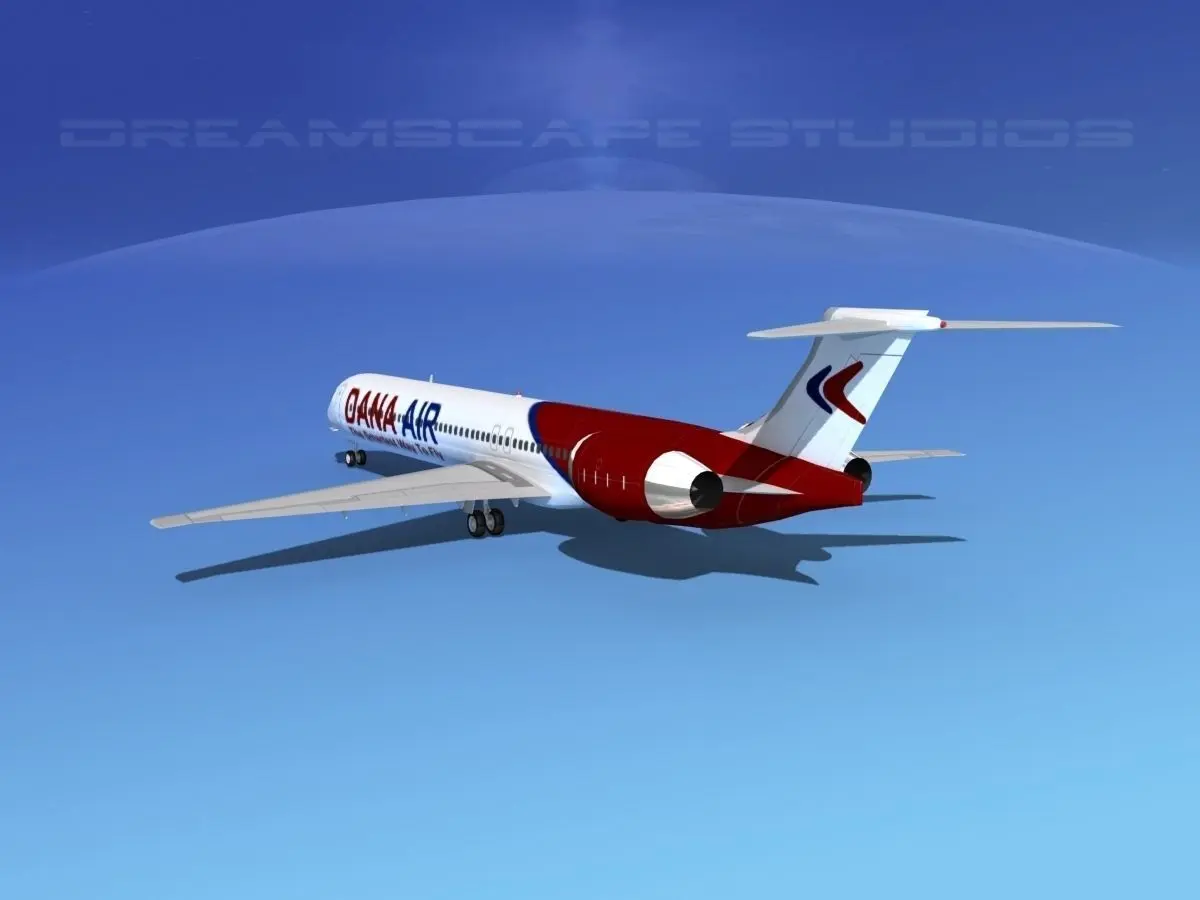 McDonnell Douglas MD83 Dana Air This model was originally built in Max 13 near to scale (within 3-4% of scale) and fully textured. It comes with all the materials and textures shown in renderings here.It has a detailed exterior including radio antennas and pitot tubes. Landing gear have been finished with a moderate amount of detail too.