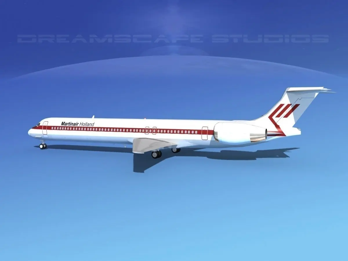 McDonnell Douglas MD83 Martinair This model was originally built in Max 13 near to scale (within 3-4% of scale) and fully textured. It comes with all the materials and textures shown in renderings here. It has a detailed exterior including radio antennas and pitot tubes. Landing gear have been finished with a moderate amount of detail too. It comes with animateable ailerons, flaps, elevators, rudder, landing gear, landing gear doors and turbines. It is available in several formats for a wide variety of end users. This model comes with many different liveries. It is built to be used in in-flight or airport ground animations and video or simulation. It can also be used to populate an airport scene. MD-83 is a longer range version of the MD-81 basic family model aircraft. It has a greater fuel capacity with two additional fuel tanks and more powerful engines. The -83 also has higher operating weights and it could carry up to 155 passengers and had a range of 2500 miles. The first one was delivered in 1985 and the last was delivered in 1999.