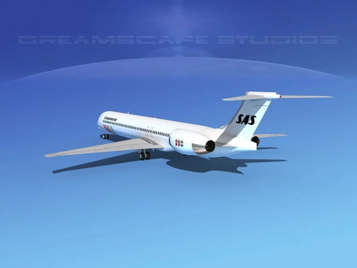 McDonnell Douglas MD83 SAS2 This model was originally built in Max 13 near to scale (within 3-4% of scale) and fully textured. It comes with all the materials and textures shown in renderings here. It has a detailed exterior including radio antennas and pitot tubes. Landing gear have been finished with a moderate amount of detail too. It comes with animateable ailerons, flaps, elevators, rudder, landing gear, landing gear doors and turbines. It is available in several formats for a wide variety of end users. This model comes with many different liveries. It is built to be used in in-flight or airport ground animations and video or simulation. It can also be used to populate an airport scene. MD-83 is a longer range version of the MD-81 basic family model aircraft. It has a greater fuel capacity with two additional fuel tanks and more powerful engines. The -83 also has higher operating weights and it could carry up to 155 passengers and had a range of 2500 miles. The first one was delivered in 1985 and the last was delivered in 1999.