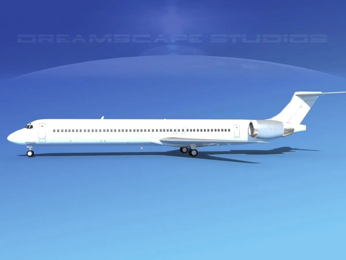 McDonnell Douglas MD83 Unmarked 1 This model was originally built in Max 13 near to scale (within 3-4% of scale) and fully textured. It comes with all the materials and textures shown in renderings here. It has a detailed exterior including radio antennas and pitot tubes. Landing gear have been finished with a moderate amount of detail too. It comes with animateable ailerons, flaps, elevators, rudder, landing gear, landing gear doors and turbines. It is available in several formats for a wide variety of end users. This model comes with many different liveries. It is built to be used in in-flight or airport ground animations and video or simulation. It can also be used to populate an airport scene. MD-83 is a longer range version of the MD-81 basic family model aircraft. It has a greater fuel capacity with two additional fuel tanks and more powerful engines. The -83 also has higher operating weights and it could carry up to 155 passengers and had a range of 2500 miles. The first one was delivered in 1985 and the last was delivered in 1999.