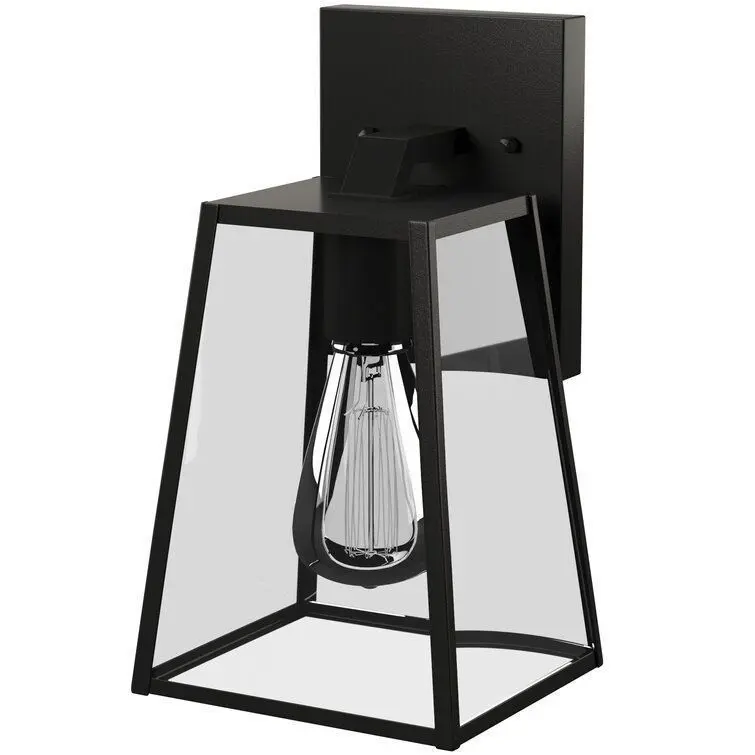 - Breathe new life into any outdoor arrangement with this one-light wall lantern, offering a boost of brightness and contemporary appeal. Rated for use in wet locations, this metal fixture features a rectangular backplate, an angular arm, and a tapered silhouette in a versatile solid finish.