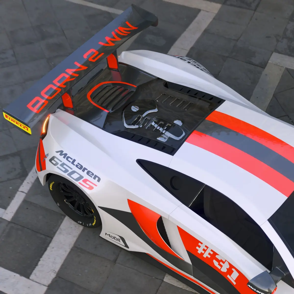 The 650S GT3 has new suspension with a 52mm wider track than the 12C GT3. The front suspension also allows the fitment of the latest generation larger diameter racing tyres . In conjunction with the optimised aerodynamic package, this provides increased levels of front-end grip and steering feel on turn-in.Name: Mclaren 650s GT3Format: 3Ds Max 2017Export: FBX, OBJRender: VRay (5.x)Polys: 466804Verts: 457737Units: CentimetersDimension: 229.89 x 511.41 x 129.37Date: 2022.9.2