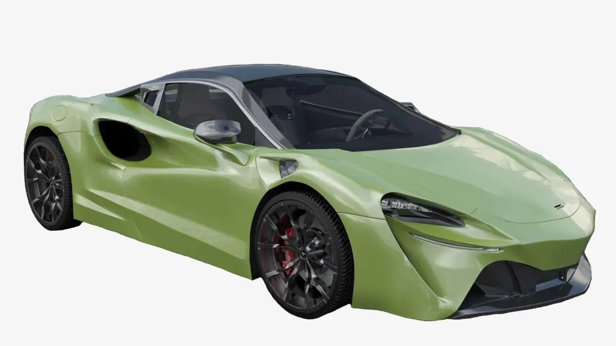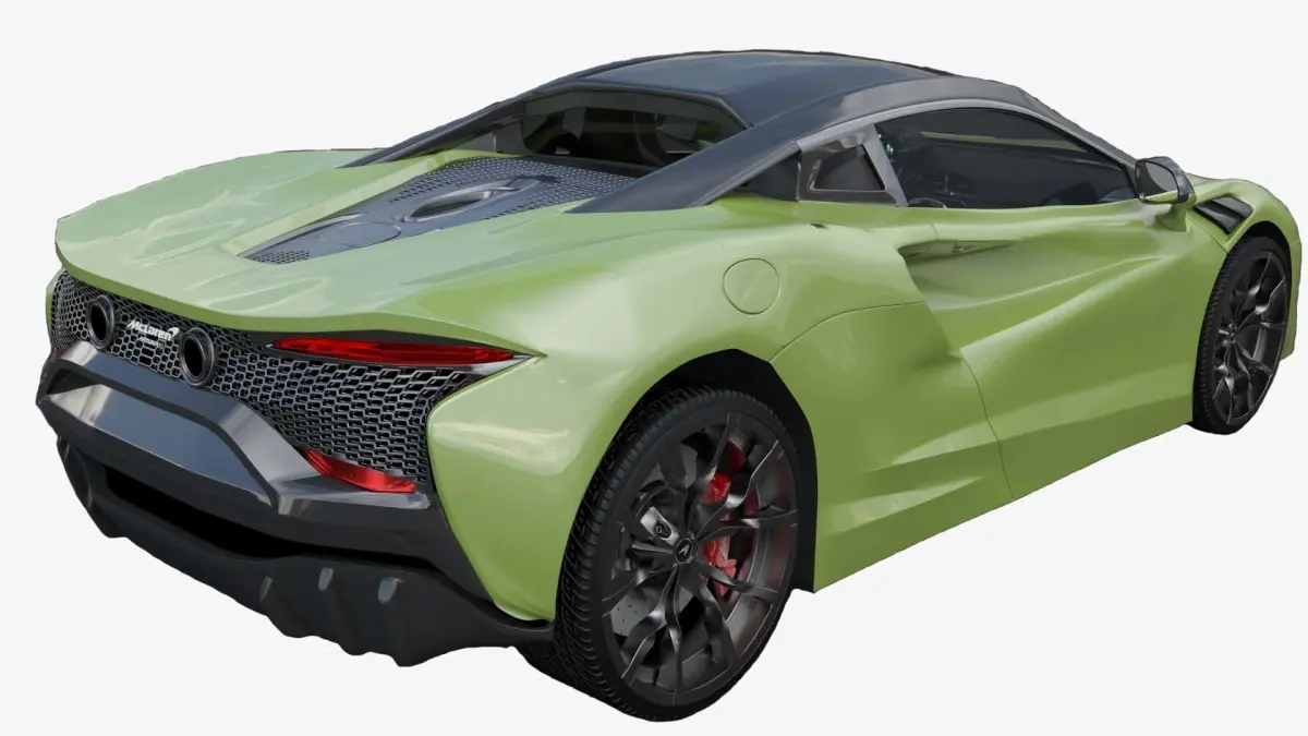 Mclaren Artura :McLaren Artura is a hybrid sports car designed and manufactured by the British car manufacturer McLaren Automotive, scheduled to enter production from 2021.The Artura uses an all-new 2,993 cc (3.0 L; 182.6 cu in) twin-turbocharged V6 engine paired with an electric motor to produce a combined output of 680 PS; 671 hp (500 kW) at 7,500 rpm and 720 N?m (531 lb?ft) of torque at 2,250 rpm. On its own, the engine produces 585 PS; 577 hp (430 kW) and 584 N?m (431 lb?ft) of torque. The all-aluminum engine has a bank angle of 120 degrees, a world first for a production V6 engine. This is to accommodate a hot-vee layout, where the two turbochargers are placed in the vee of the engine. Power is sent to the rear wheels through an all-new 8 speed dual-clutch transmission. Redline is at 8,500 rpm.Model Information:Length=4539mm