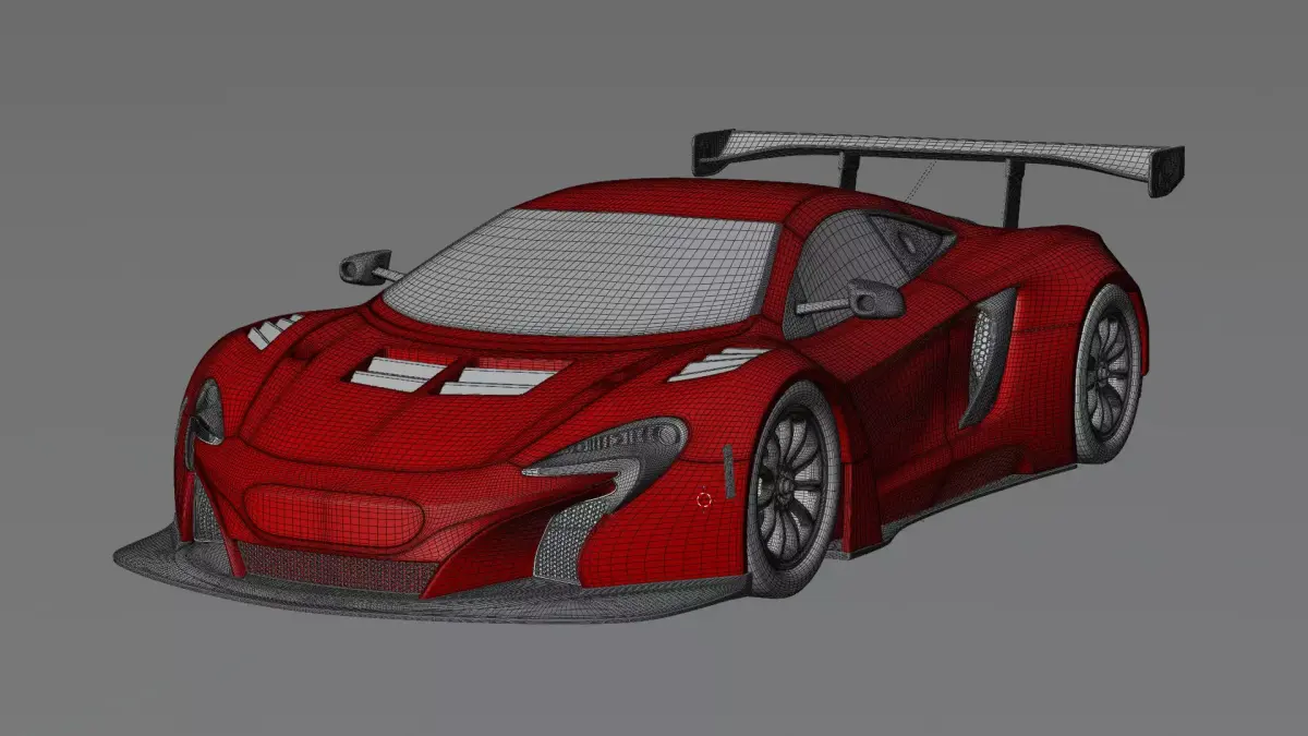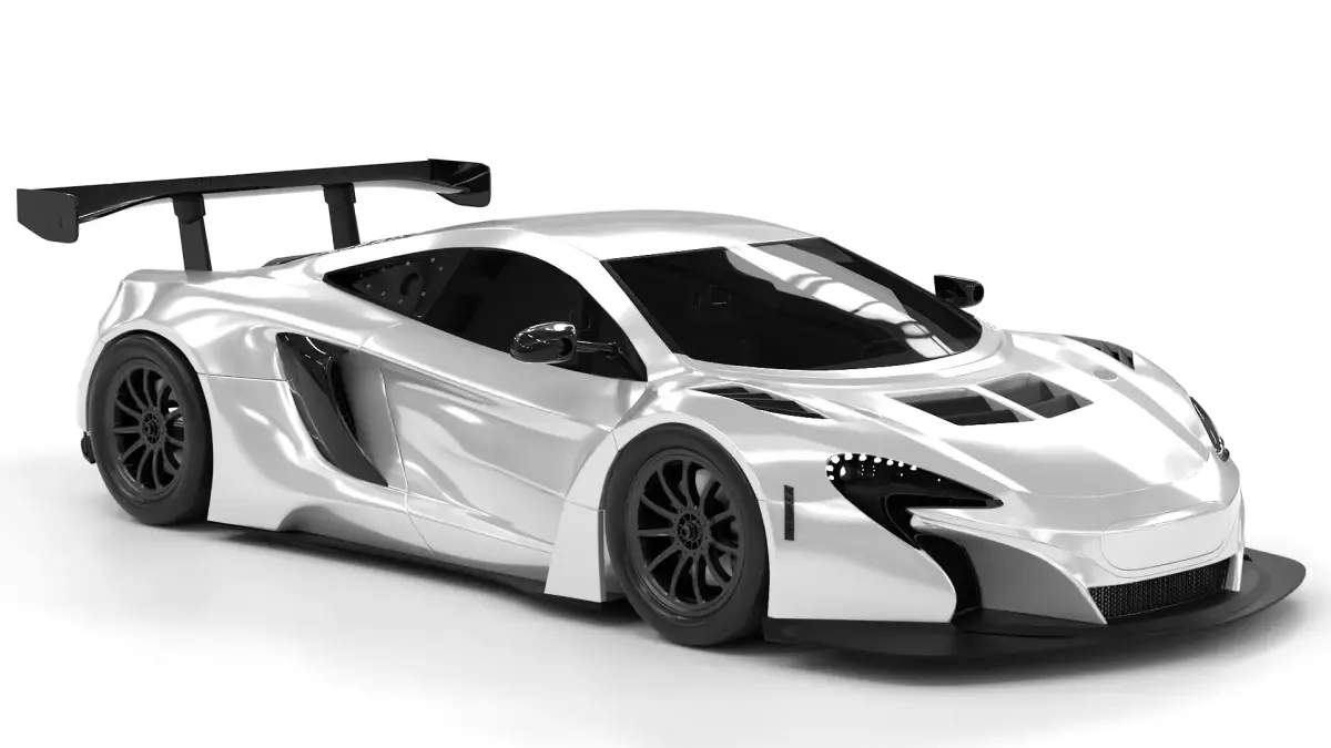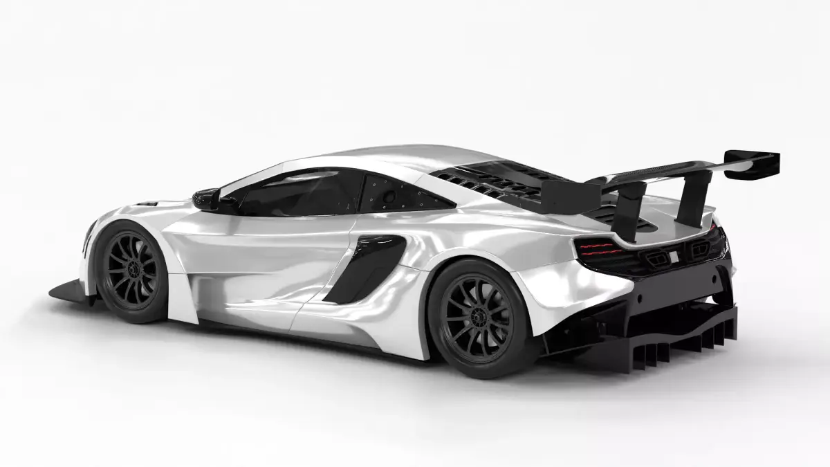High-detail futuristic supercar 3D model with aerodynamic design and racing-style body kit. Includes detailed geometry for exterior parts such as wheels, vents, and spoiler.