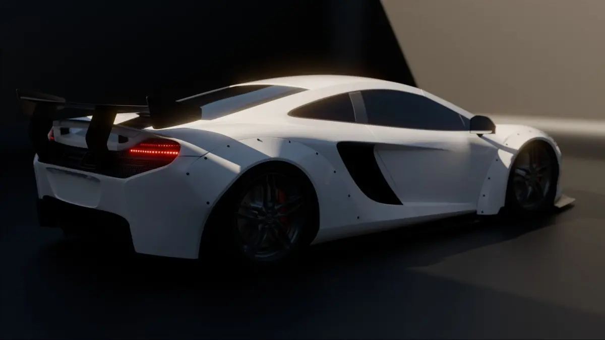 This McLaren is the combination of the P1 and the MP4-C, finished with a stylish body kit by Liberty Walk. This model translates from the P1 in the front to the MP4-C in the back. It comes with extended fenders and a huge spoiler in the back which makes it a performance-ready car. Note: this model doesn't include the interior of the car.