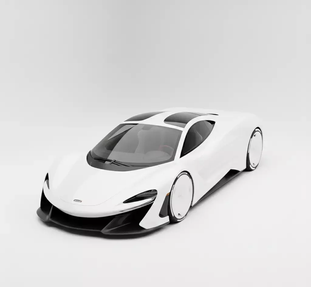 This is a high-fidelity 3D model of a cutting-edge hypercar, meticulously designed with the aggressive and aerodynamic language of the McLaren W1. Rendered in a brilliant pearlescent white, the model showcases a low-slung, mid-engine silhouette optimized for maximum downforce and airflow. Key design elements include the deep-set front aero-channels, a wrap-around cockpit canopy, and striking fan-style aerodynamic wheel covers with integrated performance tire branding. The bodywork features intricate carbon fiber detailing along the front splitter and side skirts, emphasizing its track-focused engineering. This professional-grade asset is ideal for high-end automotive visualizations, futuristic racing simulations, and cinematic projects requiring a flagship pinnacle-performance vehicle.