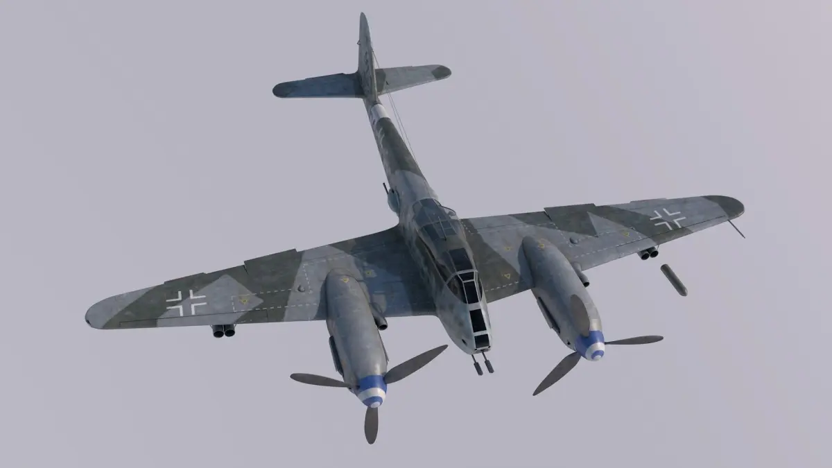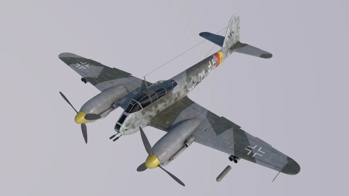 The Messerschmitt Me 410 Hornisse (Hornet) was a German heavy fighter and Schnellbomber used by the Luftwaffe during World War II. Though an incremental improvement of the Me 210, it had a new wing plan, longer fuselage and engines of greater power. The changes were significant enough for the aircraft to be renamed the Me 410. Highly detailed, high poly 3D model, with full interior, various versions and moving control surfaces. Clean, quadrant mostly geometry. Includes textures for two aircraft of the B2/U2 variant, fitted with two extra Mk108 cannons in the bomb bay.