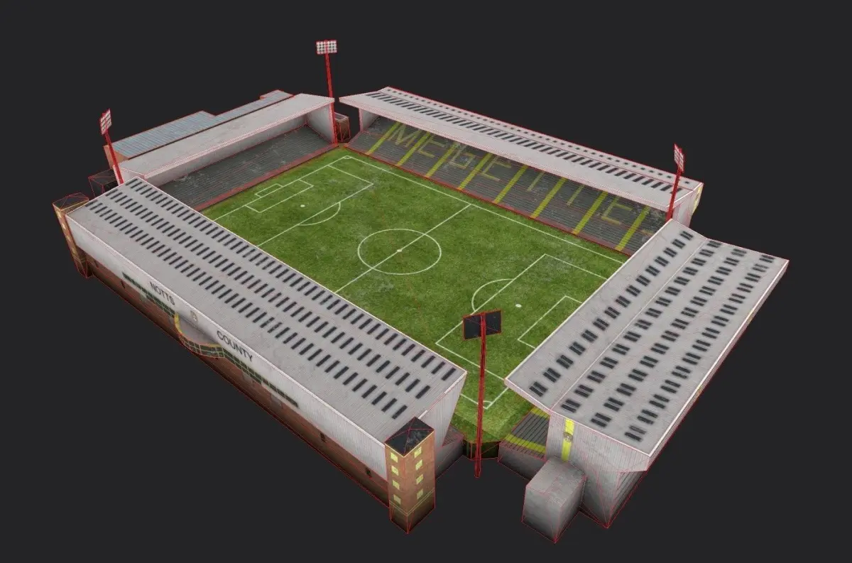 Low poly model of a Meadow Lane Stadium, it is non-PBR with 4k resolutions. This is a low poly model with 364 polys. This is an ideal opportunity to decorate your scene with an object that will be in other plans, and that would be seen from a long distance. All dimensions are by ratio 1:1. The model has 1 daylight mode and 1 night mode map.