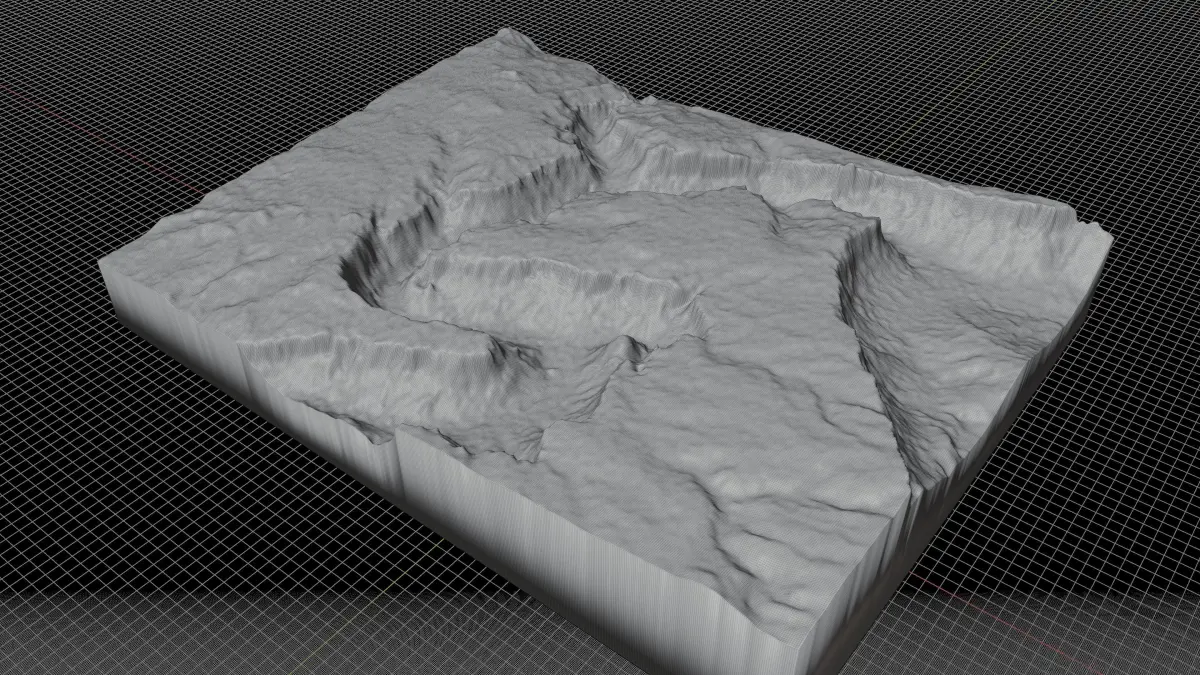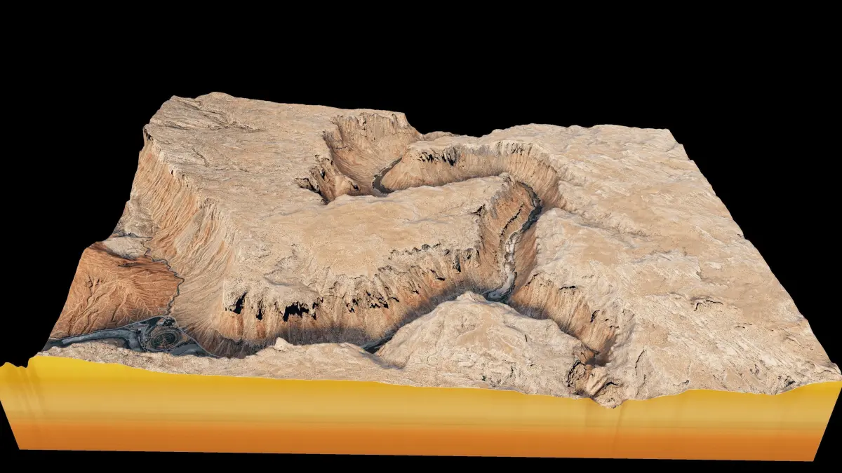 Beautiful winding canyon and the Colorado River flowing below 3d model terrain.