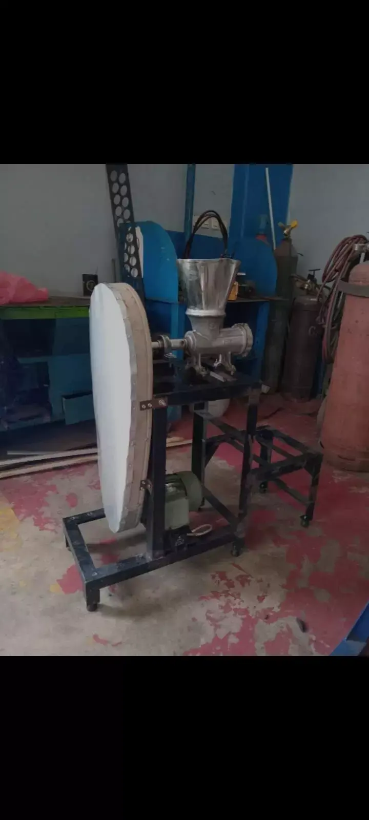 Equipped with a belt-driven motor system, this grinder efficiently processes various types of raw materials, including: