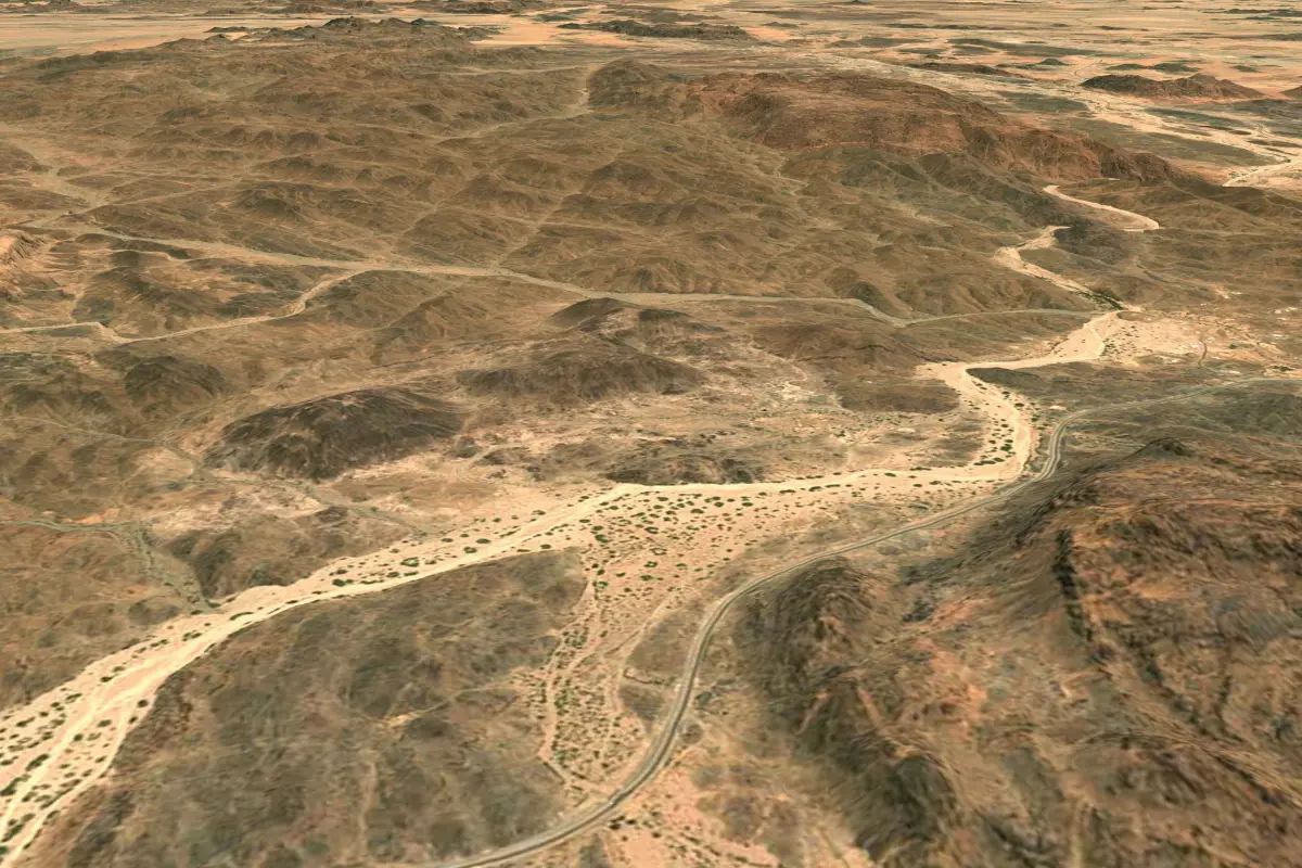 Terrain model of the Mecca region and the Red Sea coast of Saudi Arabia.