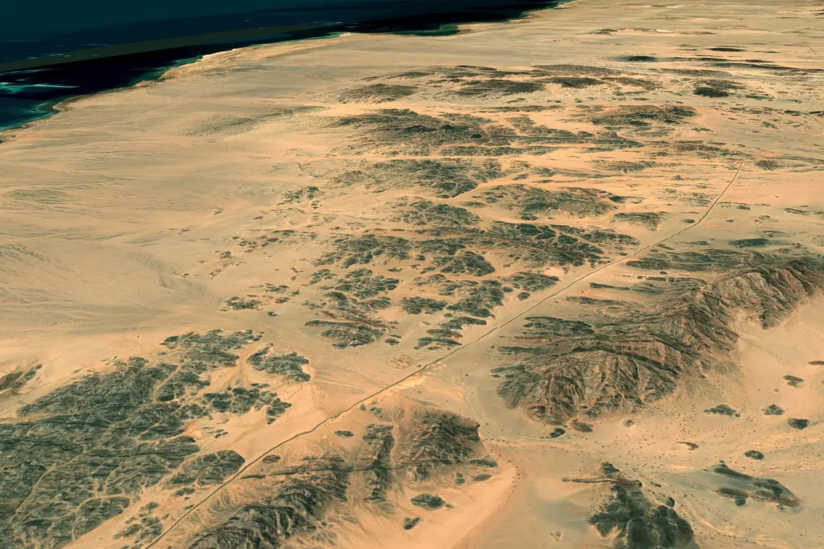 Terrain model of the Mecca region and the Red Sea coast of Saudi Arabia.