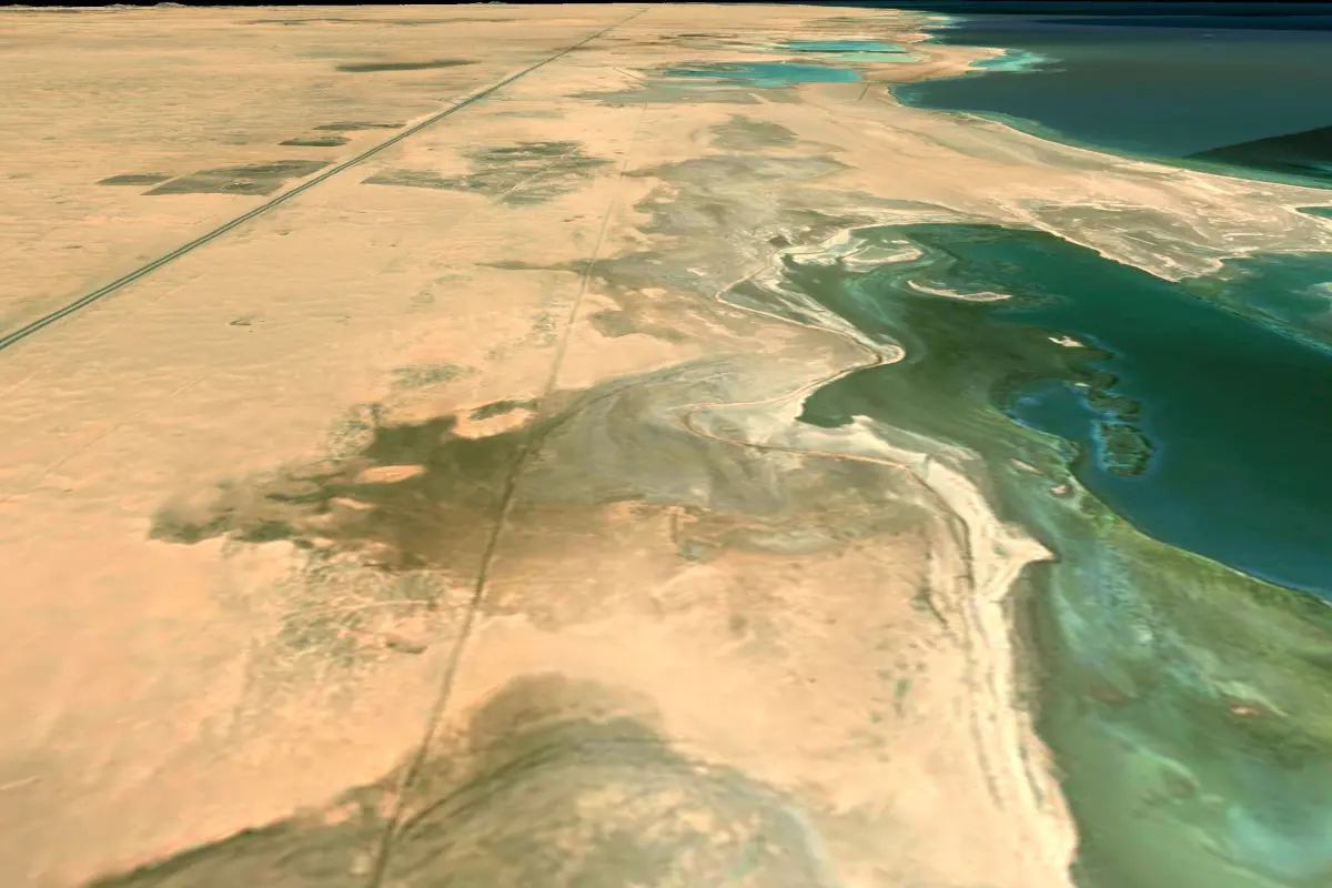 Terrain model of the Mecca region and the Red Sea coast of Saudi Arabia.