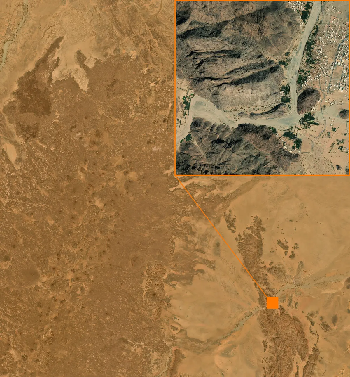 Terrain model of the Mecca region and the Red Sea coast of Saudi Arabia.
