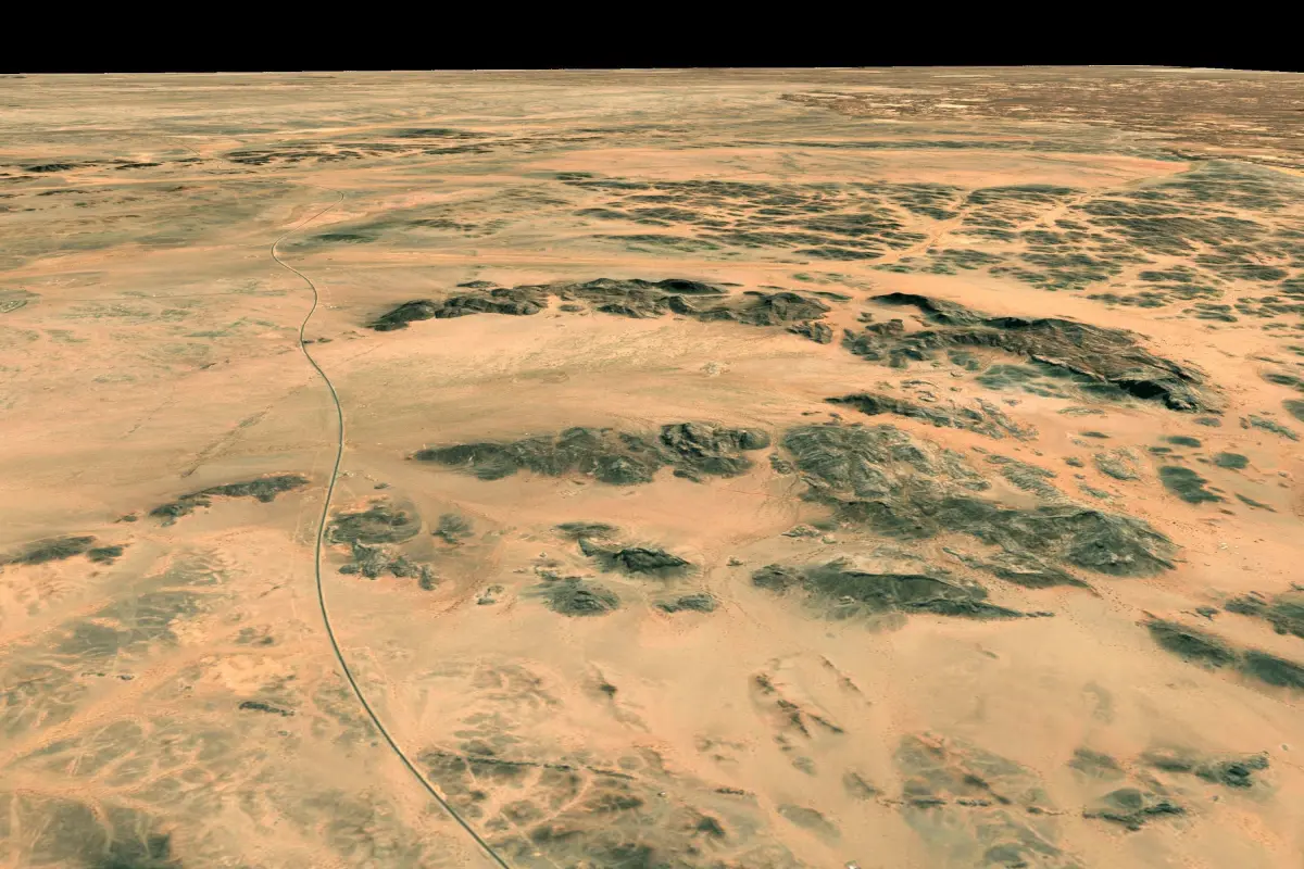 Terrain model of the Mecca region and the Red Sea coast of Saudi Arabia.