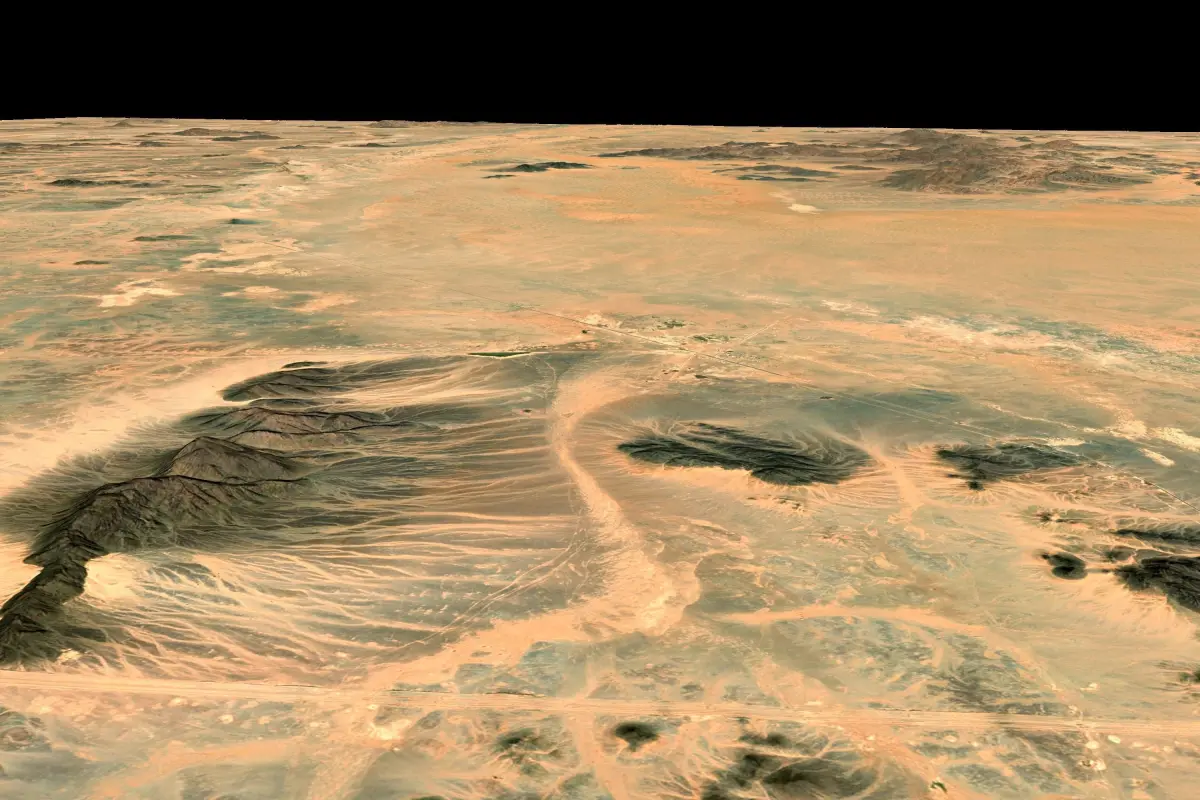 Terrain model of the Mecca region and the Red Sea coast of Saudi Arabia.