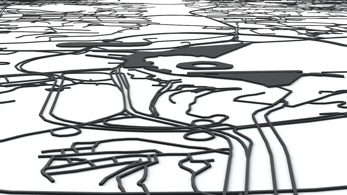 - the model is positioned on a flat surface (road network is on the “floor” - no elevation data included)