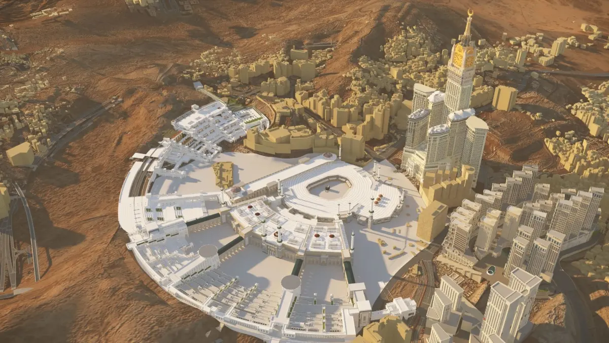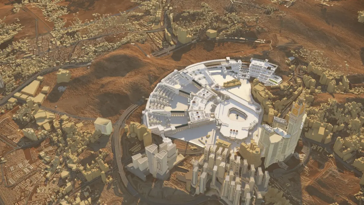 This is the 3D model of the city of Mecca. It includes the royal tower, the mosque and some nearby buildings.